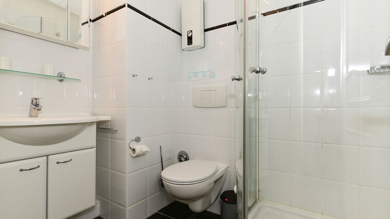 Das Badezimmer ist mit einer Dusche, einem WC und einem großen Spiegelschrank ausgestattet – hier können Sie sich bestens erfrischen.