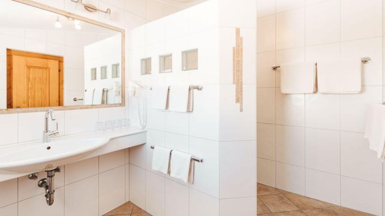 • Badezimmer mit großzügiger Dusche, separatem WC, Fön