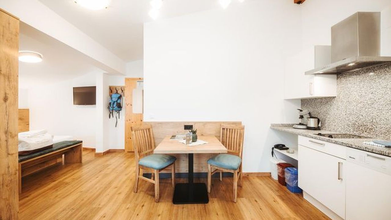 • Küche voll ausgestattet (2-Platten-Herd mit Backrohr, Kühlschrank, Geschirrspüler, Kaffeemaschine, Wasserkoche, Töpfe & Geschirr)
