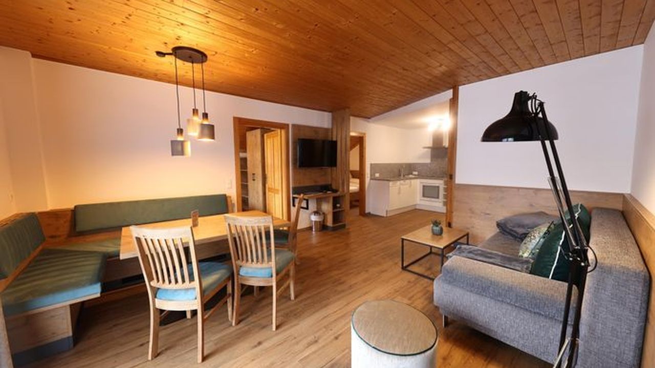 Genießen Sie Ihre Urlaubstage im Gartenchalet Zirbe. Das Appartement bietet reichlich Wohnraum: mit separatem Schlaf- und Wohnbereich ist somit genügend Platz für alle vorhanden. Optimal für Familien: Der Kinderspielplatz zum Toben und Spielen liegt in unmittelbarer Nähe.Ausstattung