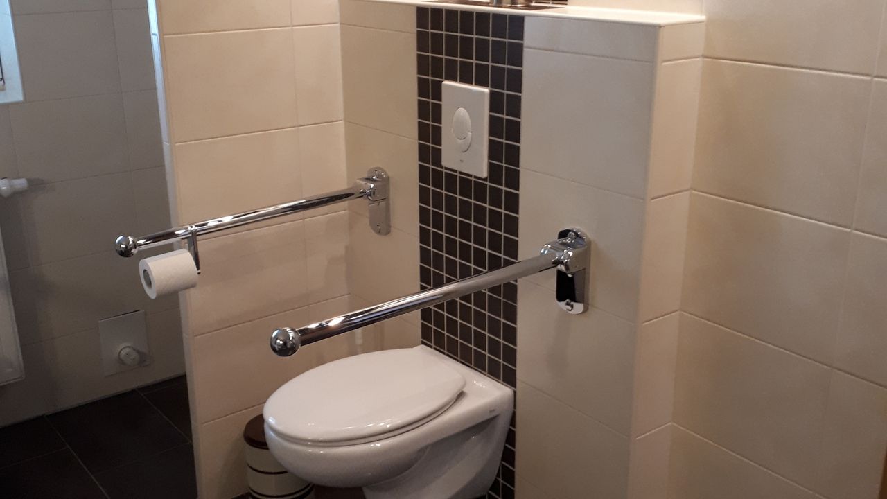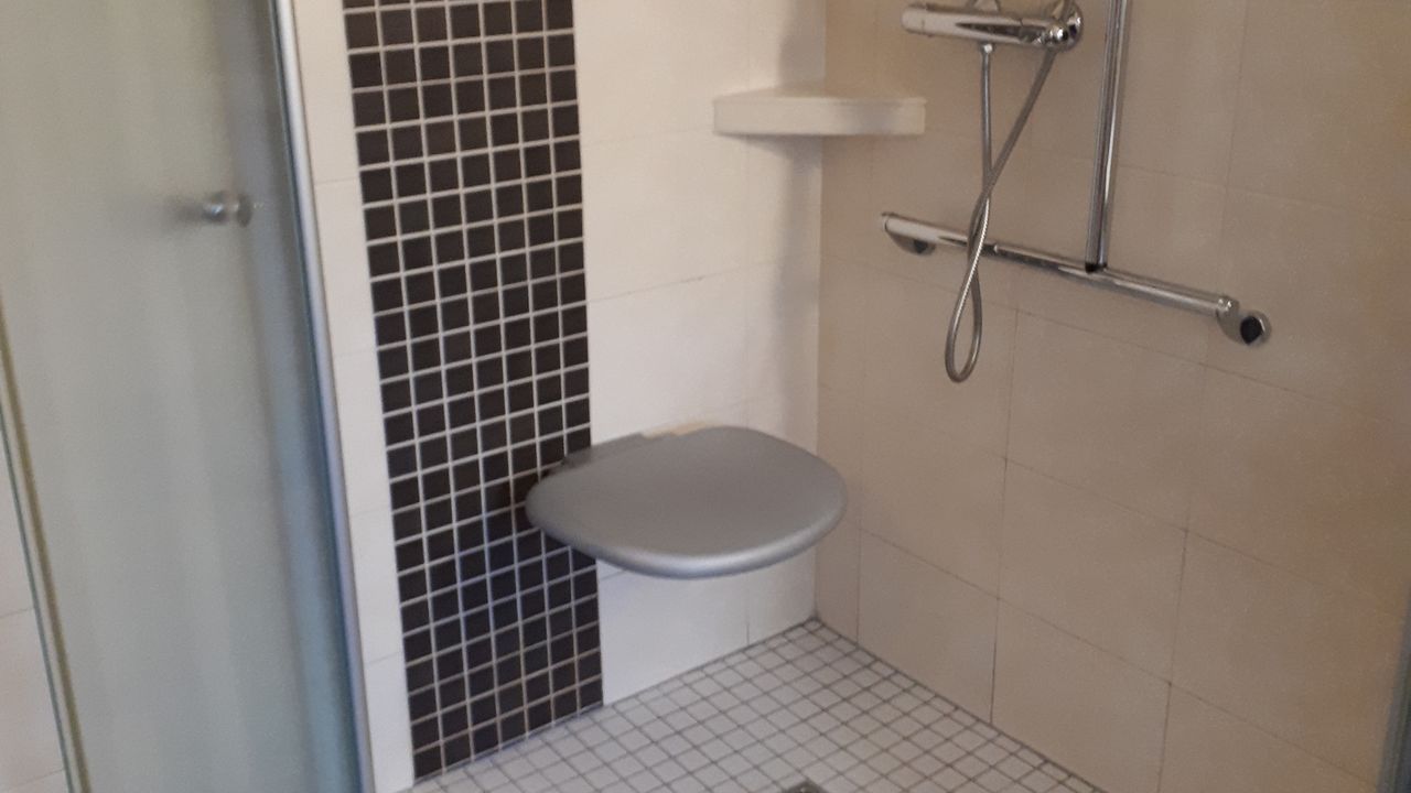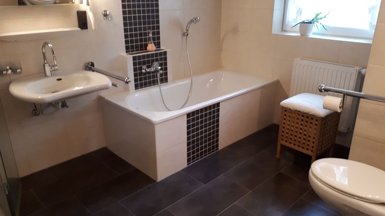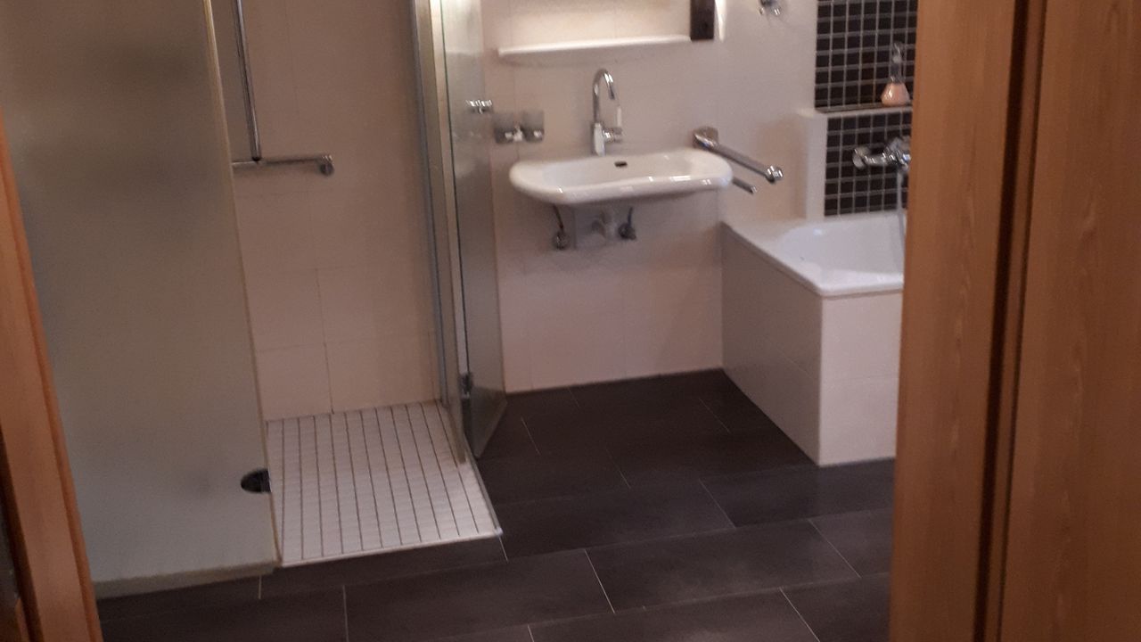 Unser Highlight aber ist das Badezimmer mit Badewanne und befahrbarer Dusche. Alle Gegenstände sind behindertenfreundlich.