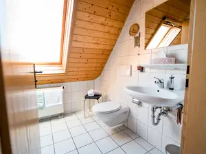 Appartement 9 in 2. Etage (DG), 73 m², für 3 Personen, 3 Sterne besteht aus:Schlafzimmer mit Doppelbett, Schlafzimmer mit einem Einzelbett, Wohnraum mit Couch- und Sesselgarnitur (Couch ausziehbar), Kabel-TV mit Flachbildschirm, Safe, kostenfreier Internetzugang, Stereoanlage mit CD-Player und Radio, Balkon mit Markise, separate sehr gut ausgestattete Küche mit Essplatz, Dusche/WC, Haarfön.