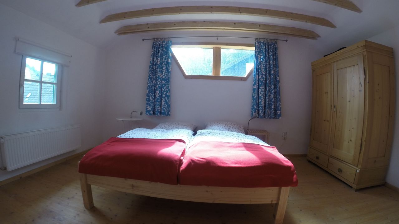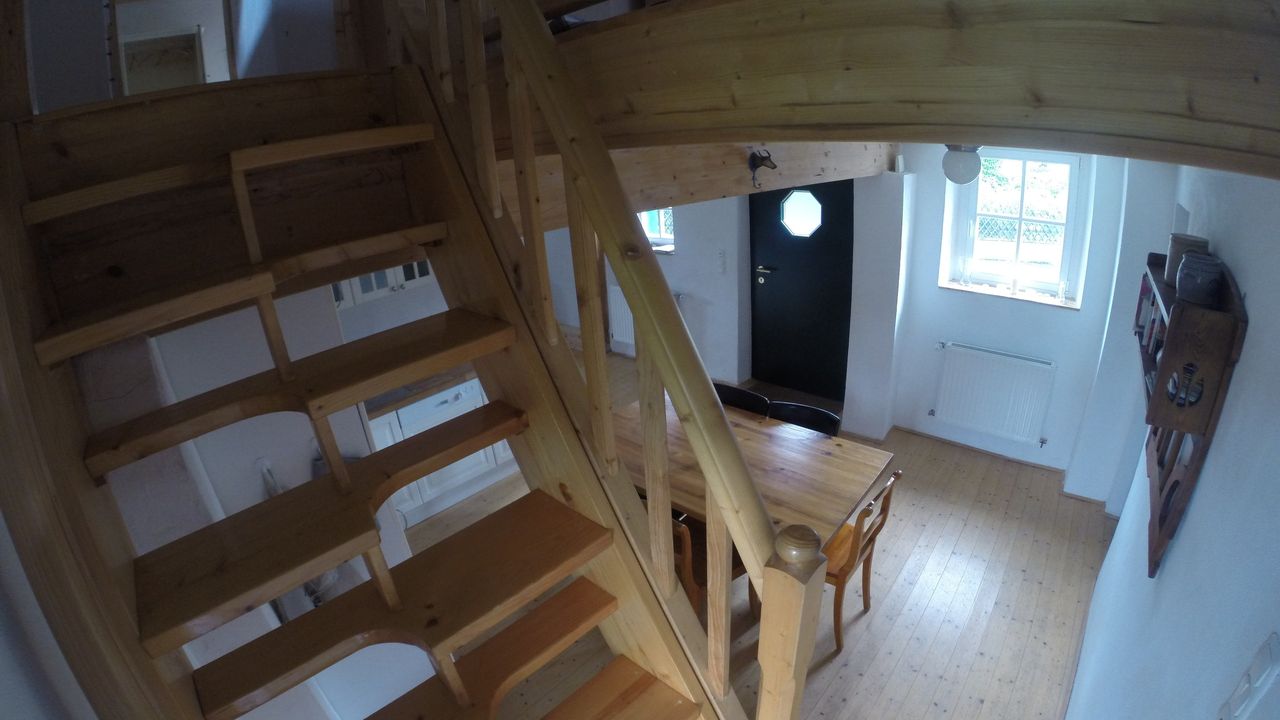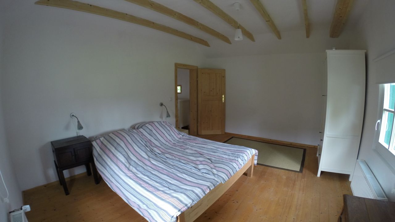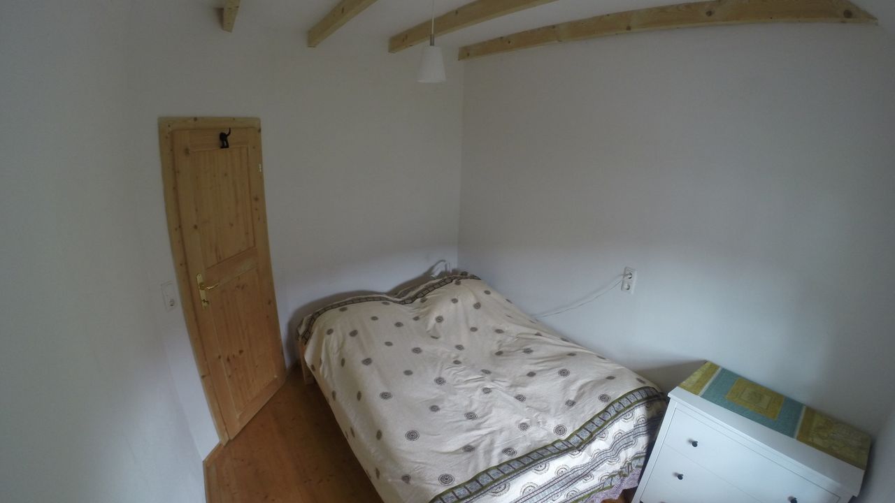 Im Untergeschoss gibt es ein Bad mit einzigartiger Bruchsteinmauer, Badewanne und WC, ein Wohnzimmer, ebenfalls mit Bruchsteinmauer, mit großem LED Fernseher, DVD-Player und Musikanlage, eine Küche mit Spülmaschine und Induktionskochfeld sowie ein Abstellraum mit Waschmaschine. Das Obergeschoss beherbergt 3 Schlafzimmer (Betten 2 x 1,60 m, 1 x 1,20 m) sowie ein Bad mit Dusche und WC.