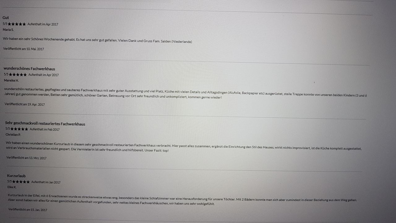 Da die große Mehrheit unserer Gastgeber bemüht ist, Ihnen als Gast möglichst umfangreiche Informationen zu geben, ist es wichtig, dass Sie die Unterkunftbeschreibung aufmerksam lesen. Die meisten Fragen unserer Urlauber beantwortet der engagierte Gastgeber nämlich selbst.