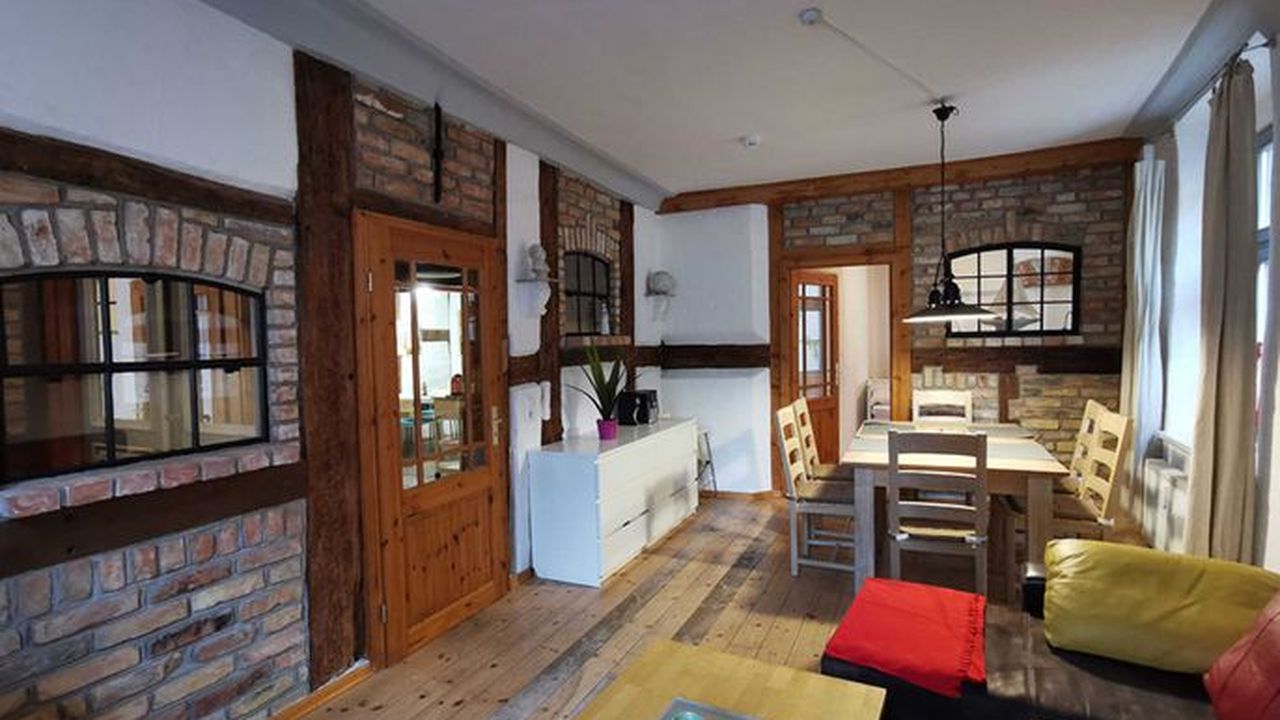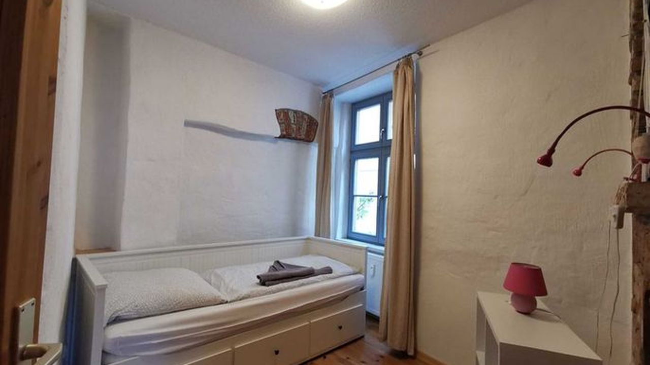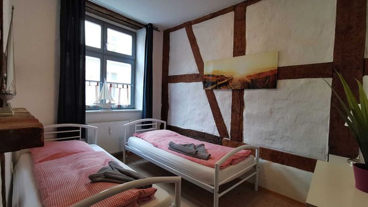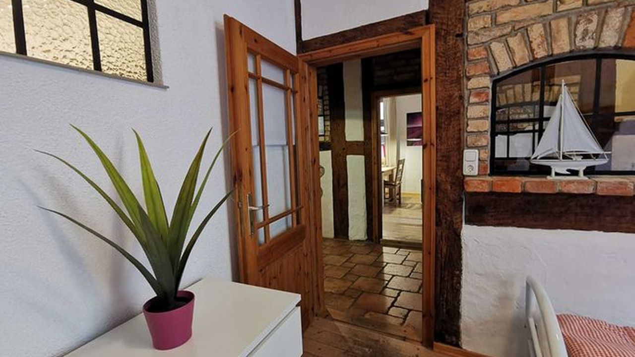 Unsere Ferienwohnung (ca 70 m²) befindet sich in der Frankenstr. 49 im Erdgeschoss, direkt in der Altstadt in Hafennähe. Sie verfügt über ein Wohnzimmer mit großem Esstisch für 6 Personen und 2 Schlafzimmer. Die Aufbettung für die 5. und 6. Person befindet sich auf der Schlafcouch im Wohnzimmer. Die Küche mit Einbauküche und großem Esstisch hat Zugang zur Terrasse, mit Blick zum historischen Innenhof. Das Bad ist gefliest mit WC und Dusche.Ausstattung