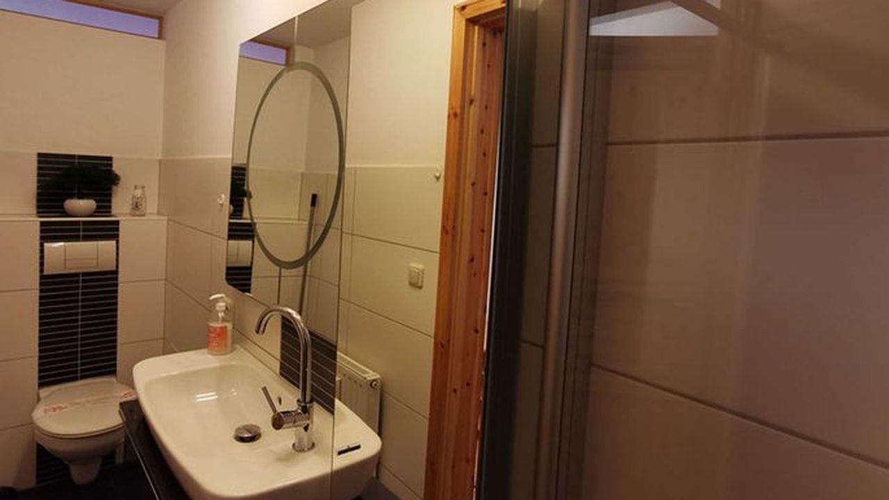 Bad: innenliegend mit Dusche, Waschbecken, WC, Ein Fön auf Nachfrage verfügbar