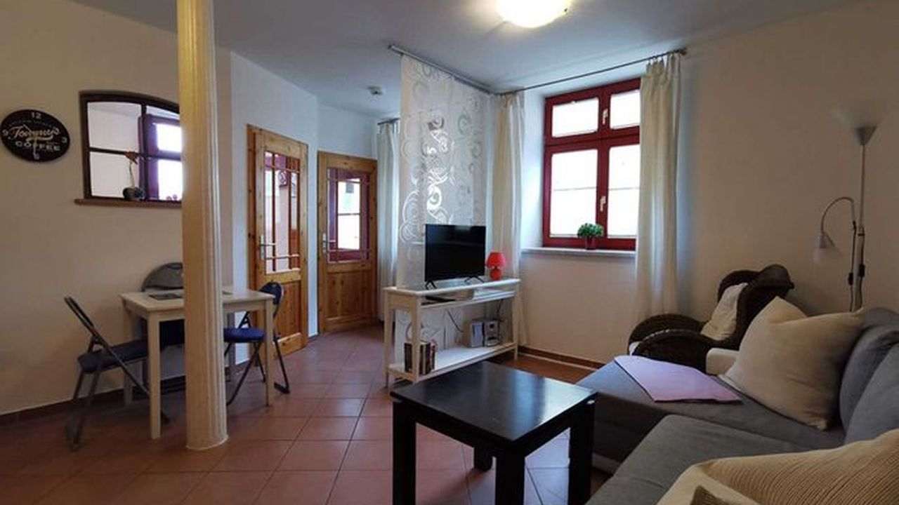 Wohnzimmer mit Schlafcouch (135 x 190), Radio, Flachbild-TV