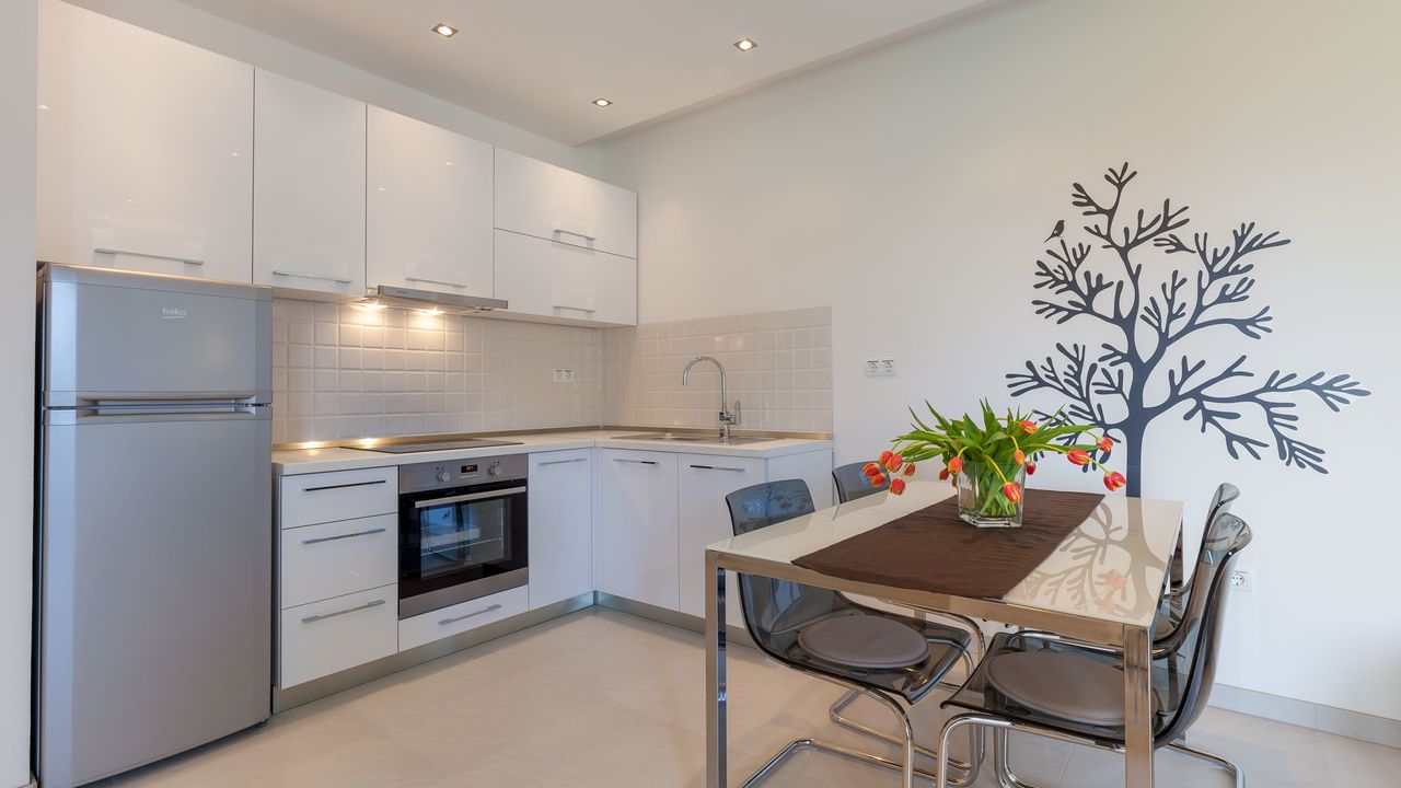 Das Appartement ist brandneu und befindet sich in einem privaten kleinen Gebäude in Podstrana und verfügt über einen privaten Parkplatz, nur 10-15 Minuten vom Zentrum von Split entfernt. Es gibt schöne Strände in der Nähe, 5 Gehminuten von der Wohnung entfernt (400 Meter).Für den abendlichen Schlummertrunk ist die schöne Terrasse ideal.