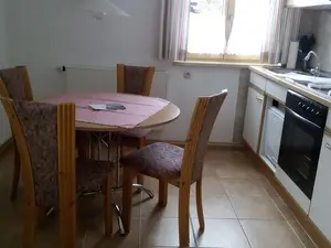 Neu eingerichtete gemütliche Ferienwohnung im 1. Stock mit Südbalkon in sehr ruhiger Lage. Die Wohnung besteht aus einer Wohnküche- Einbauküche mit Eßplatz- und einer gemütlichen Fernsehecke, einem großen Schlafzimmer für 2 Personen (Kinderbett und Zustellbett können bei Bedarf noch gut mit reingestellt werden) mit Südbalkon, einem Einzelzimmer, Dusche - WC und einer Diele.Auf Wunsch erwartet Sie ein mit regionalen Produkten gefüllter Kühlschrank! Näheres erfahren Sie auf unsere Homepage!Verfügbare Zusatzleistungen