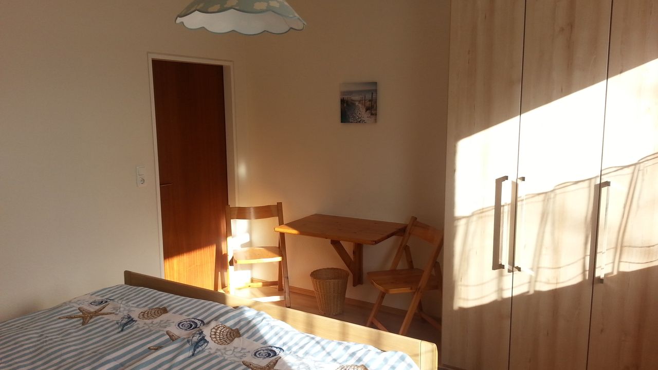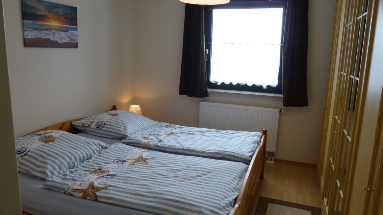 Die Ferienwohnung verfügt über 2 separate Schlafzimmer (ca. 18m² bzw. ca. 16m²) mit je 1 Doppelbett (1,80m x 2,20m bzw. 1,80m x 2m). Es stehen synthetische Bettdecken und Kopfkissen zur Verfügung.