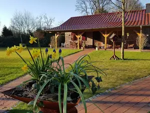Das Ferienhaus hat eine ruhige Lage ist rollstuhlgerecht ausgestattet. Das ebenderige Haus verfügt über eine gemütliche Wohnküche und einem Wohnzimmer mit zusätzlichem Essbereich und Kamin. Im Schlafzimmer befinden sich zwei hochwertige Einzelbetten, die allerdings verbunden werden können. Das Haus wird für zwei Personen angeboten, allerdings befindet sich im Dachgeschoss eine kleine Schlafgalerie die z.b. für Kinder auf Anfrage nutzbar ist. Eine Waschmaschine und eine Trockner sind vorhanden. Highlight ist der idyllische Außenbereich mit einer überdachten Veranda direkt am Haus mit Gartenmöbeln.Sonstiges