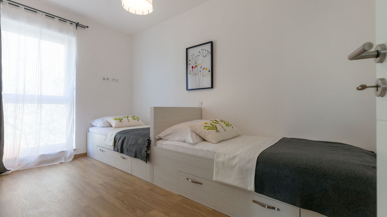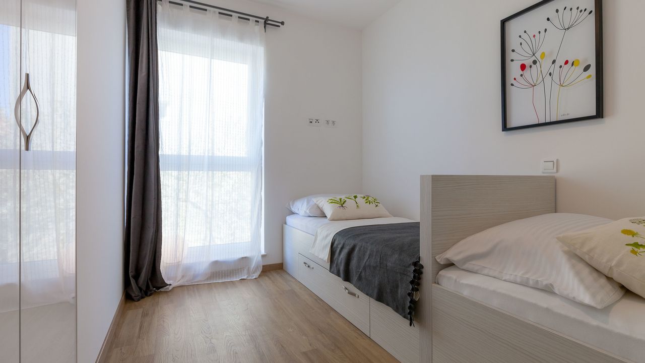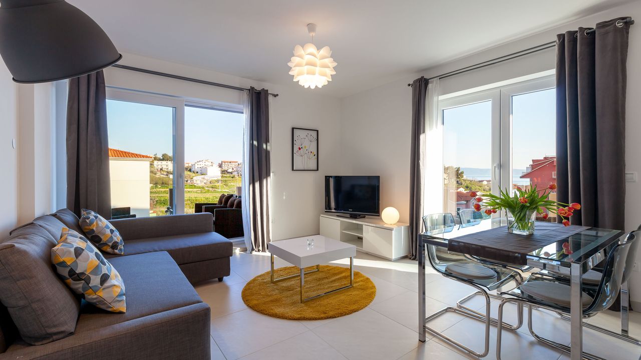 Das Appartement ist brandneu und befindet sich in einem privaten kleinen Gebäude in Podstrana und verfügt über einen privaten Parkplatz, nur 10-15 Minuten vom Zentrum von Split entfernt. Es gibt schöne Strände in der Nähe, 5 Gehminuten von der Wohnung entfernt (400 Meter).