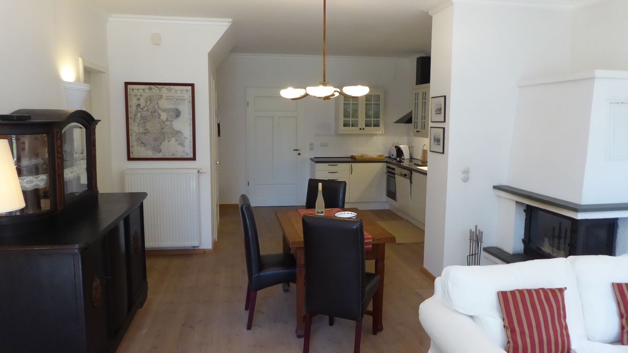 Das 4 Sterne (DTV-Deutscher Tourismus Verein) und kernsanierte Gutshaus ist in drei hochwertig ausgestattete Ferienreihenhäuser aufgeteilt: das West Haus, das Ost Haus und das Mittel Haus. Jedes Ferienhaus besteht aus zwei übereinander liegenden, eigenständigen Wohnungen: die Parterrewohnung und die Galeriewohnung im 1.Obergeschoss. Beide Wohnungen sind über eine eigene, außerhalb der Wohnungen, aber innerhalb des Gutshauses liegende Treppe verbunden. Ein Haus kann mit insgesamt 8, eine Wohnung mit 2 bis 4 Personen belegt werden, eine Aufbettung kann erfragt werden. Alle Wohnungen können auch einzeln gemietet werden. Die Ferienwohnungen sind im Stile der 1900er Jahre, aber mit heutigem Komfort eingerichtet. Das besondere Ambiente und die Liebe zum Detail werden Sie begeistern! Großzügig gehaltene Räumlichkeiten mit viel Tageslicht und offenen, lichtdurchfluteten Galerien lassen sofort Wohlbefinden aufkommen. Es steht Ihnen moderne Technik zur Verfügung. WLAN -Zugang im Haus, ein Radio und SAT-TV ergänzen die Einrichtung. Die sanitären Einrichtungen bieten höchsten Komfort: exklusive weiße Designerbäder (Hommage von Villeroy & Boch und Armaturen designet by Phillip Starck) eigene Saunen in den Parterrewohnungen sowie in der Remise bieten Ihnen besonderen Feriengenuss. Genießen Sie an kühlen Abenden den offenen Kamin und an warmen Sommertagen das Grillen auf dem Freisitz. Kinder sind willkommen, spielen abseits der "Ruhebereiche" Fussball, sind im Trampolin oder in der grossen Spielscheune, Tischtennis, Kicker oder Indoor Trampolin, Auslauf ist garantiert.