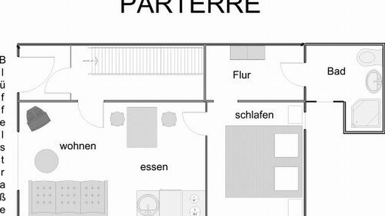 Die Wohnung liegt im Erdgeschoss und verfügt über 2 Zimmer, die freundlich und zweckmäßig eingerichtet sind.