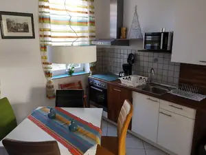 Die Ferienwohnung ist in der Mitte des 18. Jahrhunderts erbauten Fachwerkhaus. Sie ist eine liebevoll eingerichtete Ferienwohnung für 3 Personen. Auf Wunsch kann ein Babybett zugestellt werden. Die Ferienwohnung ist komplett eingerichtet und entspricht den heutigen modernen Anforderungen.Die Küche verfügt über eine Kaffeemaschine, einen Backofen, einen Geschirrspüler und eine Mikrowelle. Zur Ausstattung gehören außerdem ein Flachbildfernseher und eine Stereoanlage. Im eigenen Bad finden Sie eine Dusche, ein WC und eine Badewanne vor. Die Ferienwohnung bietet zudem kostenfreies WLAN in der gesamten Wohnung. Außerhalb der Wohnung befindet sich eine kleine Terrasse mit einer Sitzmöglichkeit, die man zum Grillen oder relaxen nutzen kann. Ein Grill steht zur Verfügung. Einkaufsmöglichkeiten befinden sich direkt im Ort.