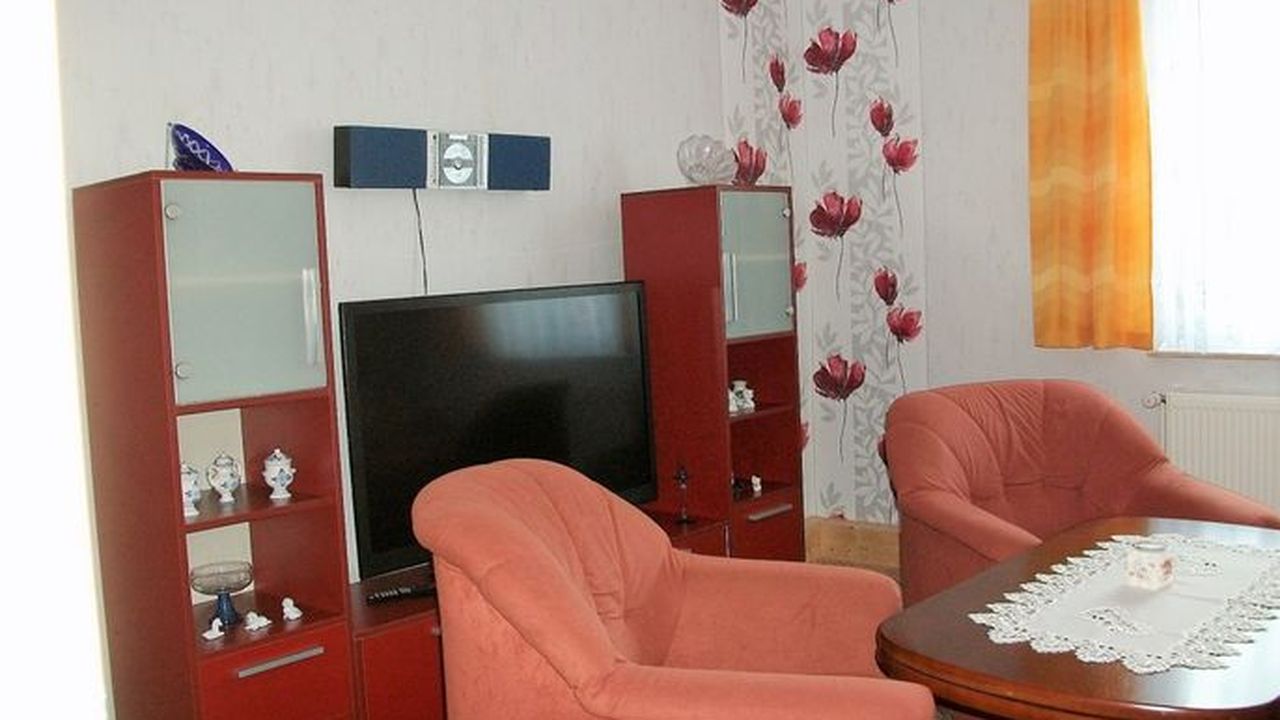 Ferienwohnung im Erdgeschoss, Größe ca.44qm, 1 Wohnzimmer mit Radio und TV, 1 Schlafzimmer mit 3 Betten, 1 Küche mit Essecke, Geschirr, Kühlschrank, Kaffeemaschine, Toaster, Dusche/WC. Handtücher sind nicht im Preis enthalten.Sonstiges