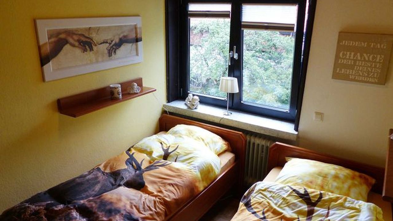 Das Schlafzimmer ist nach Osten ausgerichtet, so dass Sie sich von der Morgensonne wecken lassen können, wenn Sie nicht das Verdunkelungsrollo heruntergelassen haben.Die beiden Einzelbetten sind mit allergikergerechter Bettwäsche ausgestattet.