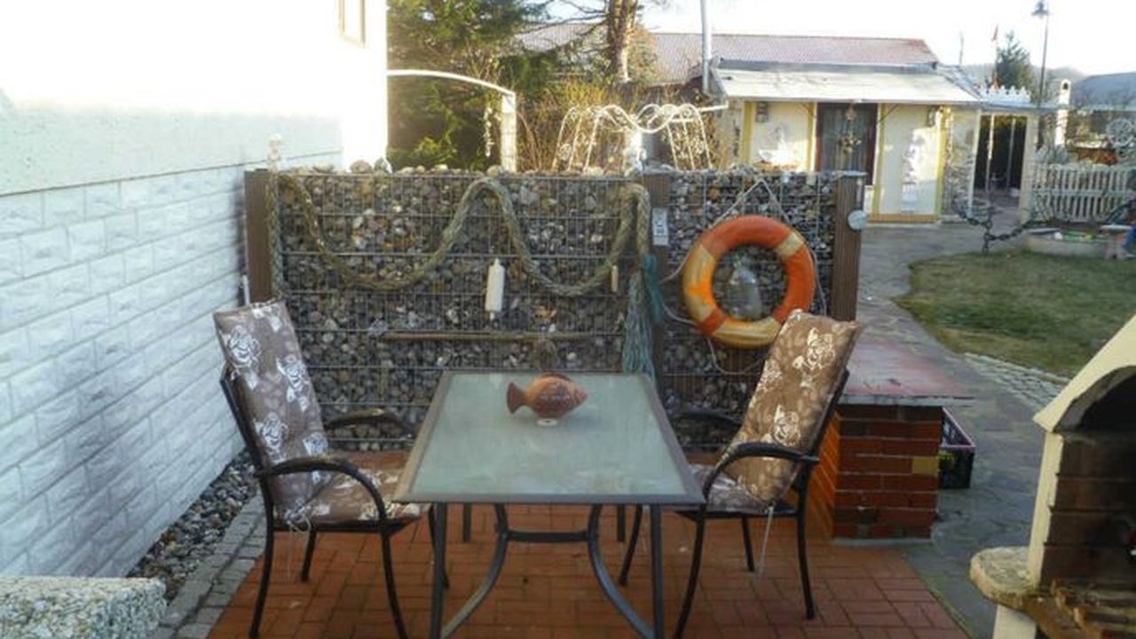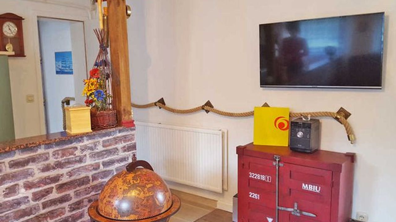 Im gemütlichen Schlafzimmer befinden sich ein Doppelbett und ein großer Kleiderschrank. Im Bad starten Sie unter einer nachempfundenen Schiffsdusche in den Urlaubstag. WC und ein Waschtisch komplettieren das Tageslichtbad. Am Haus können Sie auf einer eigenen Terrasse grillen und relaxen.