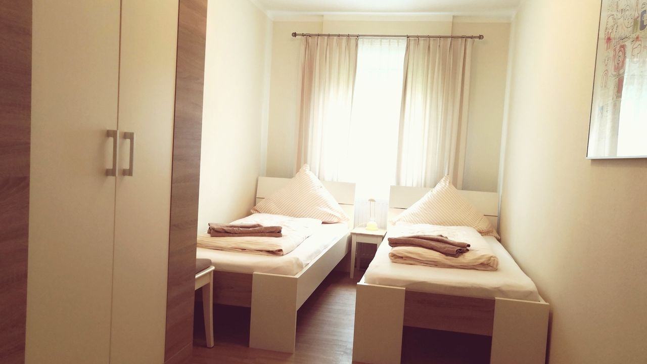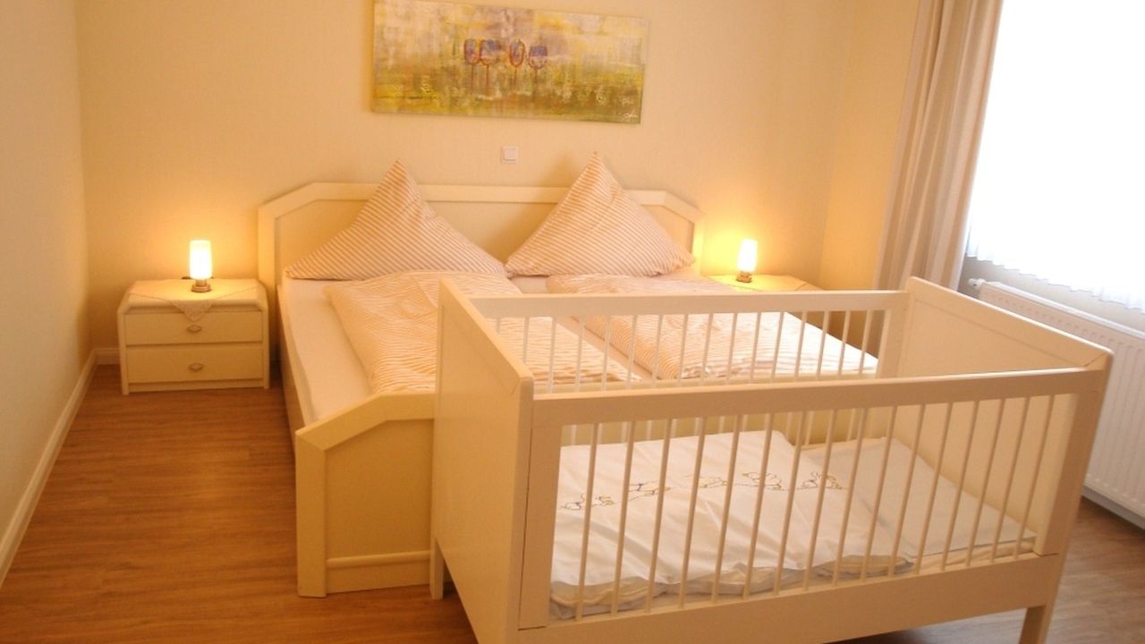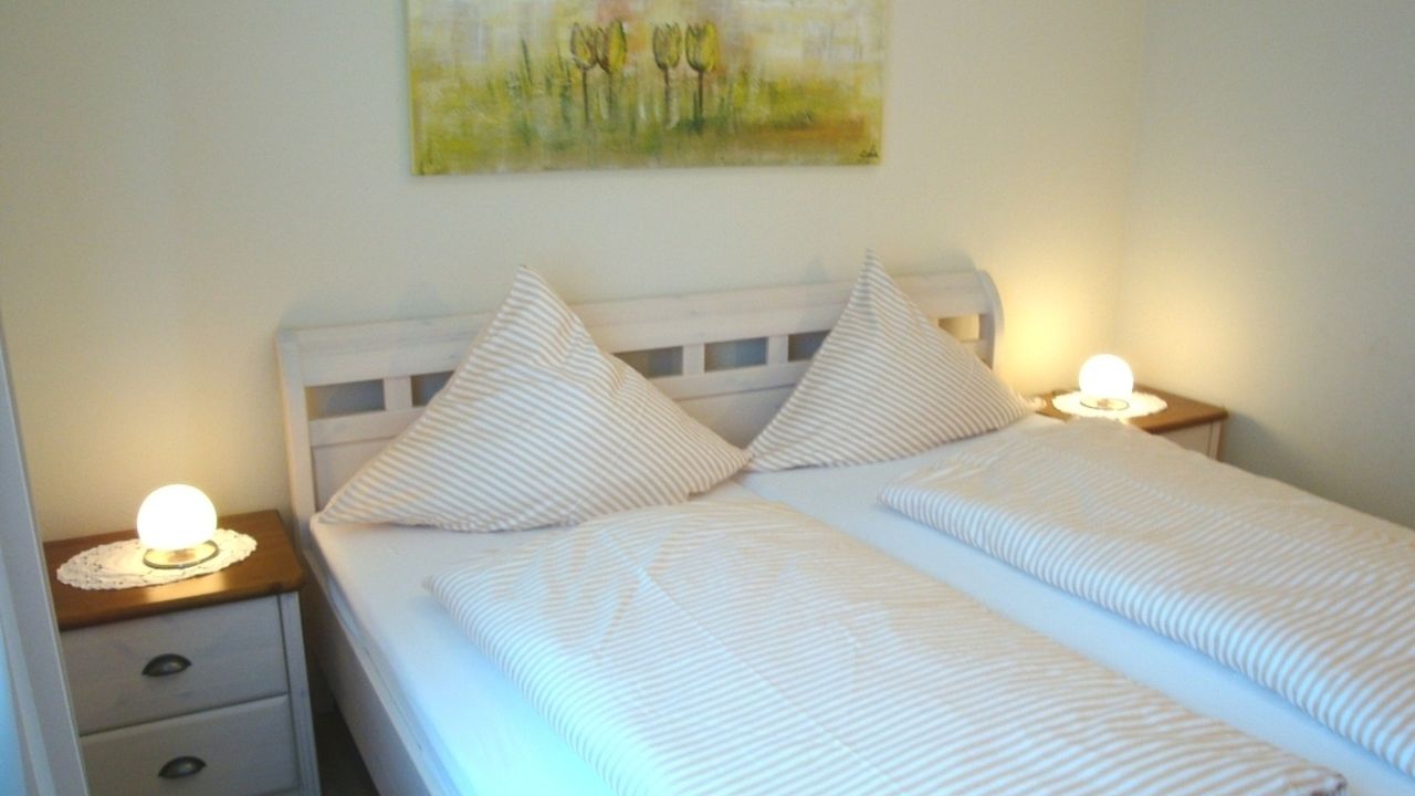 In der Ferienwohnung befinden sich drei Schlafzimmer, zwei mit einem Doppelbett und in einem Schlafzimmer sind die Betten auseinander gestellt. Beide Bäder sind mit fast ebenerdiger Dusche mit Glastrennwänden ausgestattet.