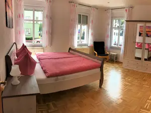 Unsere Ferienwohnung eignet sich ideal für bis zu acht Personen und verfügt über zwei Schlafzimmer, ein Wohn-/Schlafzimmer, ein Bad mit Badewanne und WC, sowie eine Küche mit direktem Zugang zum Balkon. Zur Ausstattung gehören zudem: Herd, Backofen, Spüle, Kühlschrank, Mikrowelle, Balkonmöbel, Kleiderschrank, Flachbild-TV, Esstisch und gemütliche Schlafcouch. WLAN und Parkplatz sind für unsere Gäste kostenfrei verfügbar. Bitte beachten Sie, dass es sich um eine Nichtraucherwohnung handelt. Haustiere sind auf Anfrage willkommen. Gerne stellen wir ein Kinderreisebett und einen Hochstuhl für 7,50€ mit Komplettausstattung zur Verfügung.