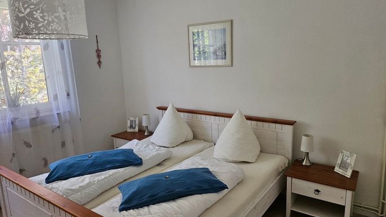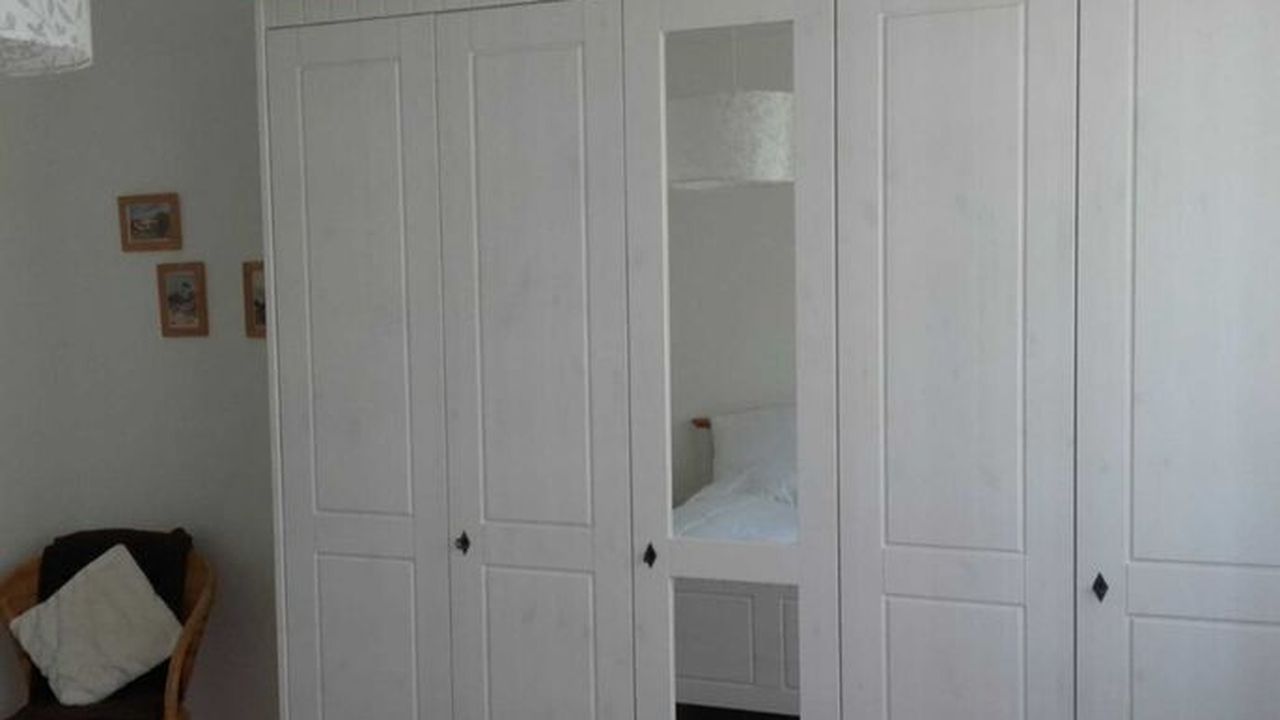 Im Schlafzimmer erwartet Sie ein komfortables Doppelbett (1,80 m x 2,00 m) sowie ein großer Kleiderschrank mit viel Stauraum. Bettwäsche und Handtücher bringen Sie bitte selbst mit.