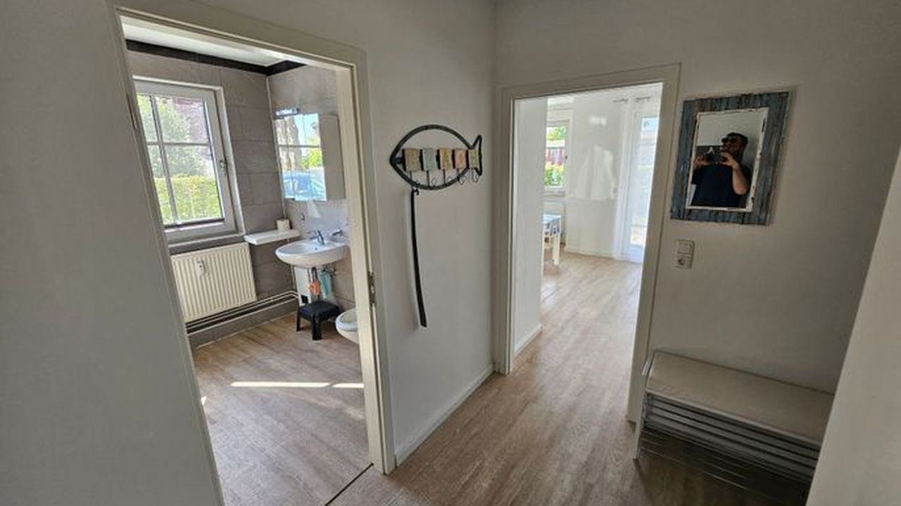 Genießen Sie Ihren Urlaub in traumhafter Ruhe am Ende einer kleinen, idyllischen Stichstraße in Timmendorf auf der schönen Insel Poel. Die Ferienwohnung liegt eingebettet in grüner Umgebung und ist nur etwa 800 Meter vom feinsandigen Timmendorfer Strand entfernt. Morgens frische Brötchen holen? Kein Problem der nächste Bäcker sowie mehrere gemütliche Restaurants befinden sich ebenfalls nur wenige Gehminuten entfernt. Für den größeren Einkauf erreichen Sie die Supermärkte im nahen Kirchdorf schnell und unkompliziert. Direkt gegenüber der Wohnung lädt ein Reiterhof zum Verweilen und Entdecken ein ein besonderes Highlight für Familien und Naturliebhaber. Ob Radfahren, Reiten, Wassersport oder lange Spaziergänge am Meer: Die Freizeitmöglichkeiten sind vielfältig. Ärzte und Apotheken finden Sie im rund 4 km entfernten Kirchdorf.Ein besonderes Ausflugsziel ganz in der Nähe: Die wunderschöne Hansestadt Wismar erreichen Sie in nur etwa 20 Minuten mit dem Auto oder Bus. Die Bushaltestelle ist nur wenige Meter von der Ferienwohnung entfernt.