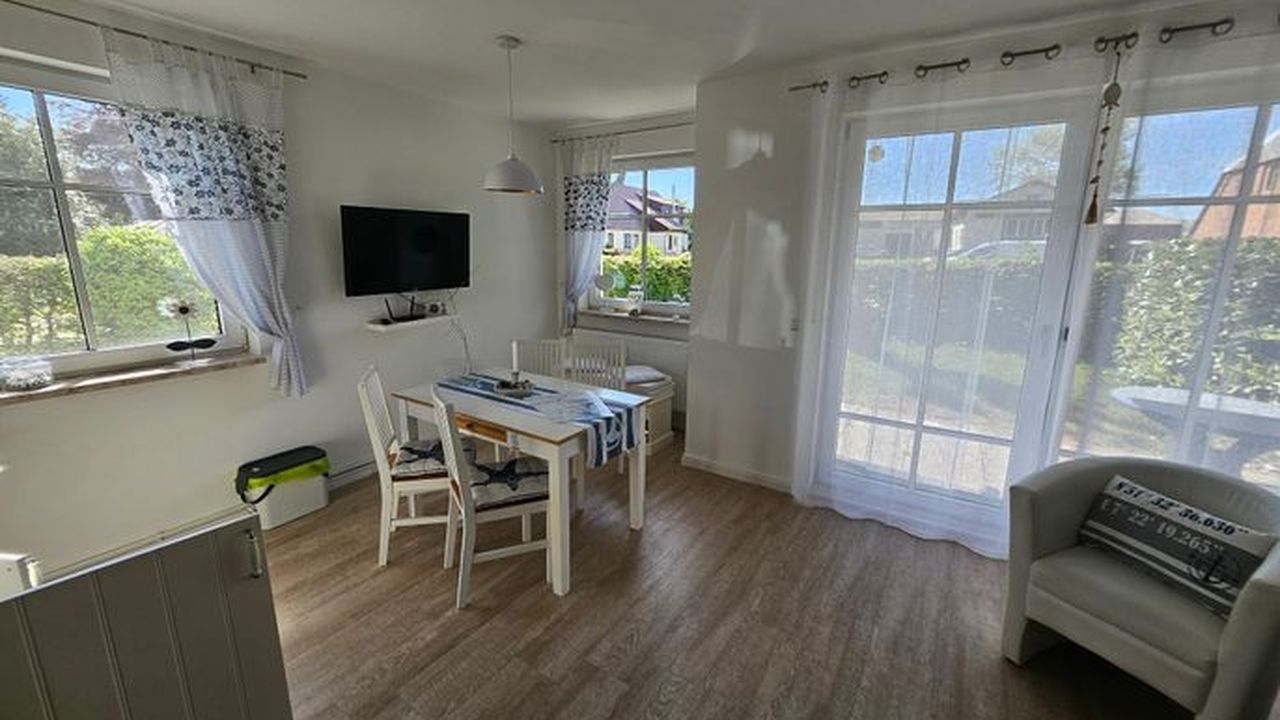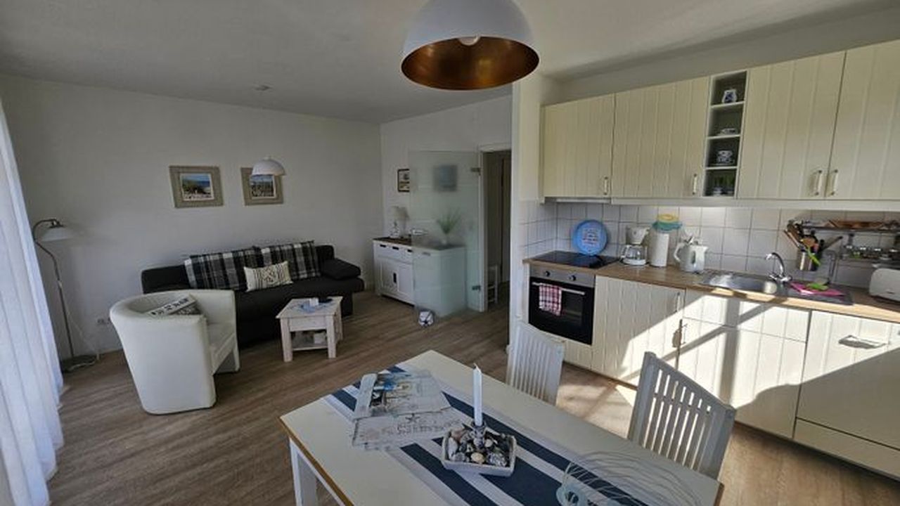 Diese charmante Ferienwohnung wurde 2017 vollständig renoviert und liebevoll mit modernen Landhausmöbeln neu eingerichtet. Auf etwa 50 m² erwartet Sie ein heller, geschmackvoll gestalteter Rückzugsort, der durch seine großzügige Raumaufteilung begeistert.Die hochwertige Einbauküche lässt keine Wünsche offen: Herd, Backofen, Geschirrspüler, Filterkaffeemaschine, Wasserkocher, Toaster und vieles mehr stehen Ihnen zur Verfügung. Ein gemütlicher Essbereich mit vier Stühlen lädt zum Verweilen ein.