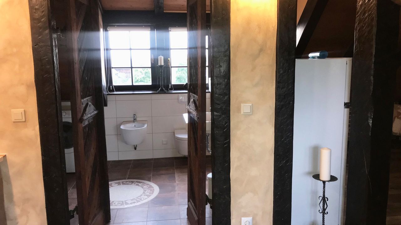 Direkt am Dorfteich gelegenes Rittergut im mediterranem Stil neu erbaut. Die hundefreundliche Ferienwohnung Turmzimmer besitzt 50 m² und ist ausgestattet mit Bad, Flur, Küche, Wohnzimmer und Schlafraum mit 4 Einzelbetten. Eine Babybett für ein Kleinkind ist zusätzlich vorhanden. Erleben Sie den vermutlich einmaligen Neubau eines Rittergutes.Das Turmzimmer ist ein Rückzugsort für sinnliche Stunden. Dafür sorgt auch ein weitreichender Rundblick über den Dorfteich und die angrenzende Umgebung. Hier wurde gerne musiziert und gemalt. Sie erkennen das leicht an einigen zurückgelassenen Instrumenten. Auch die eine oder andere Staffelei finden Sie in den Gemächern. Kurzum hier ist Kunst und Stil zu Hause.