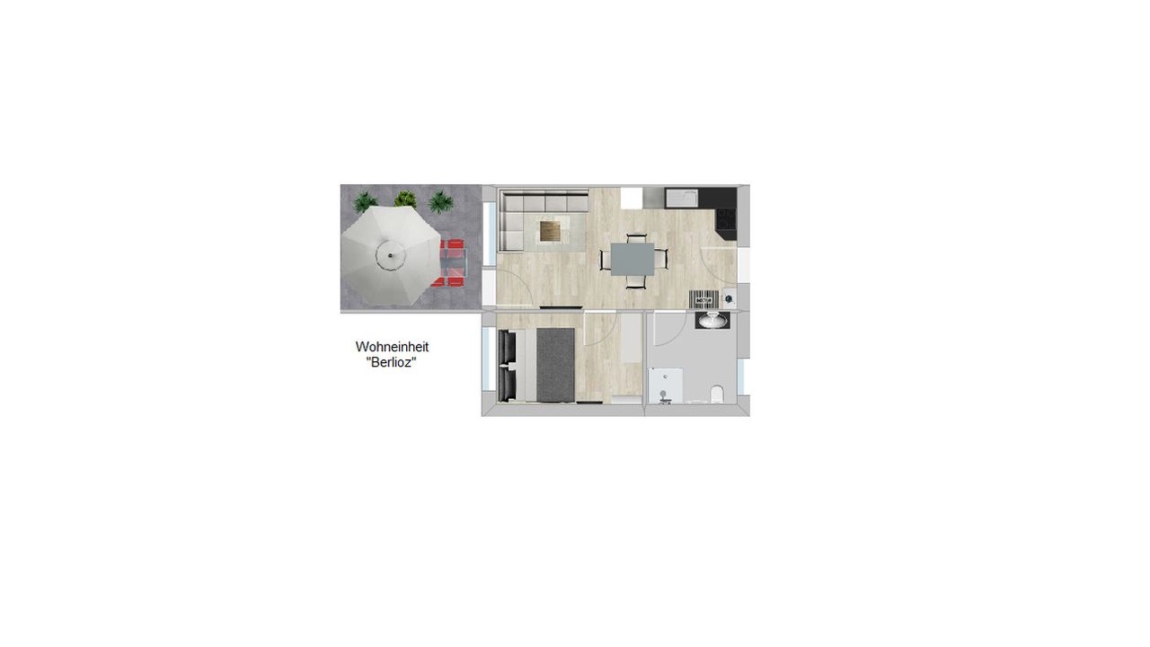 Die puristischen und hochwertig eingerichteten Wohnungen Berlioz und Delling umfassen jeweils eine Wohnküche, ein Bad mit ebenerdiger Dusche und ein Schlafzimmer mit Smart-TV und Boxspringbett. Die Wohnzimmer bieten eine Aufbettung für 2 weitere Personen auf einem Boxspringsofa, sodass die Wohnungen problemlos jeweils 4 Schlafplätze bieten.