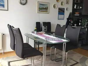Die Ferienwohnung Hafenerlebnis ist ca. 60 m² groß, liegt im 1. Oberschoss eines Mehrfamilienhauses und bietet Platz für 2 Personen. Die Ferienwohnung ist aufgeteilt in einen kombinierten Wohn-, Ess- und Küchenbereich, ein Schlafzimmer und ein Badezimmer. Der Wohnbereich mit Blick auf den Hafen ist eingerichtet mit einer Sitzgarnitur aus Leder, einem TV-Gerät (Internetfähig - Mediathek) und einer Musikanlage mit CD-Player. Als zusätzliche Schlafmöglichkeit steht im Wohnzimmer ein komfortables Schrankbett bereit. Der direkt angrenzende Essbereich bietet Ihnen einen tollen Blick über den Husumer Hafen und Zugang zu einem kleinen Balkon mit Gartenmöbeln. Die offene Küchenzeile ist mit einem Herd mit Cerankochfeld und Backofen, Kühlschrank, Gefrierschrank, Geschirrspülmaschine, Mikrowelle, Wasserkocher, Toaster und Kaffeemaschine ausgestattet. Das Schlafzimmer ist mit einem Doppelbett und Kleiderschrank eingerichtet. Auch hier haben Sie Zugang zu einem kleinen Balkon mit Morgensonne. Das innenliegende Badezimmer ist mit einer Badewanne und WC ausgestattet. Weitere Angaben: Bettwäsche, Handtücher, Endreinigung und W-LAN sind im Preis inklusive.Beschreibung der Unterkunft