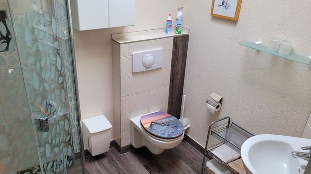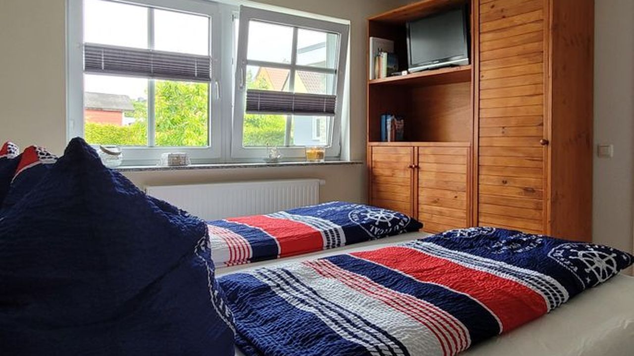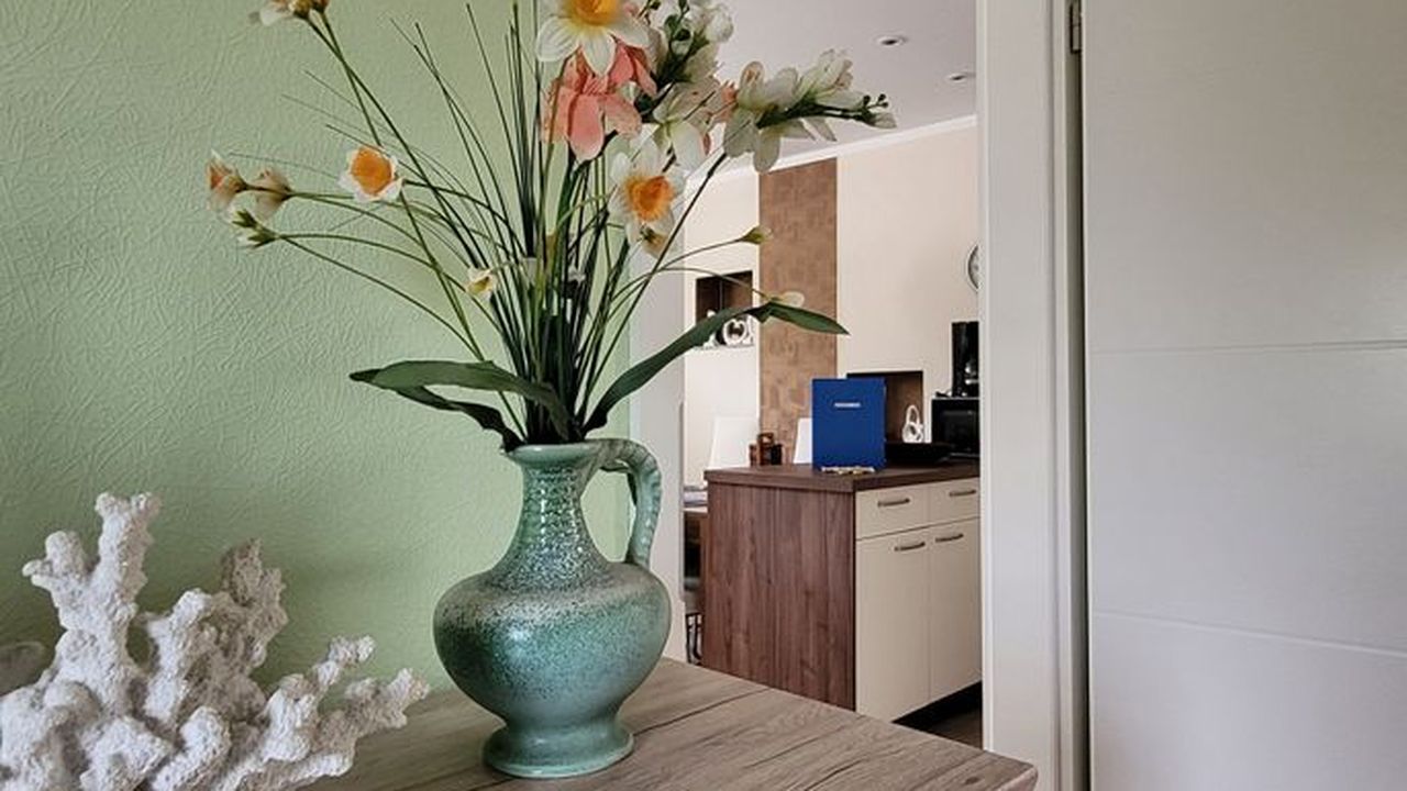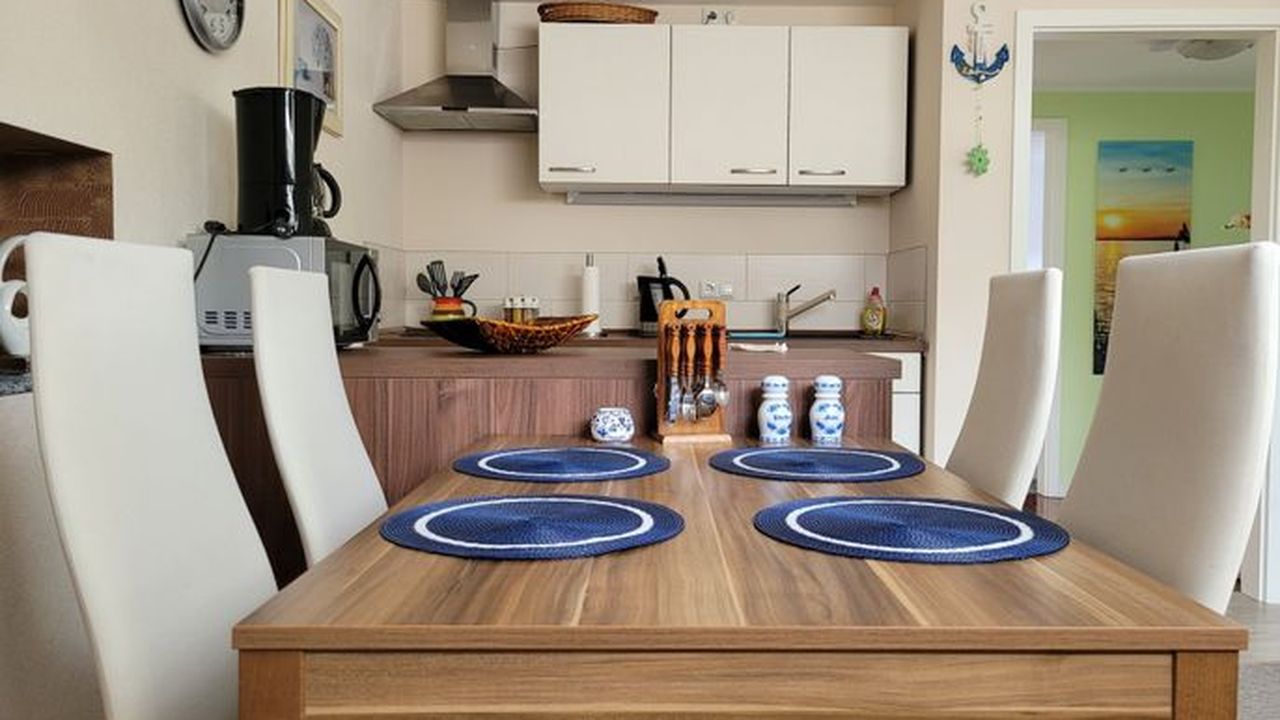 Die Wohnung befindet sich in einem separaten Gebäude auf dem Hof der Gastgeber.Sie ist ausgestattet mit einem Flur, einem Bad mit ebenerdiger Dusche, einem Schlafzimmer mit Doppelbett (1,80 Meter breit) und Schlafcouch, einem Wohnzimmer mit integrierter Küche sowie einem Essbereich ausgestattet. Ein TV ist natürlich sowohl im WZ, als auch im SZ vorhanden, ebenso wie kostenfreies W-LAN. Die Küche ist mit einem 2 flammigen Induktionsherd und einem Kühlschrank ausgerüstet, eine gemütliche überdachte Terrasse lädt zum Verweilen und Relaxen ein.