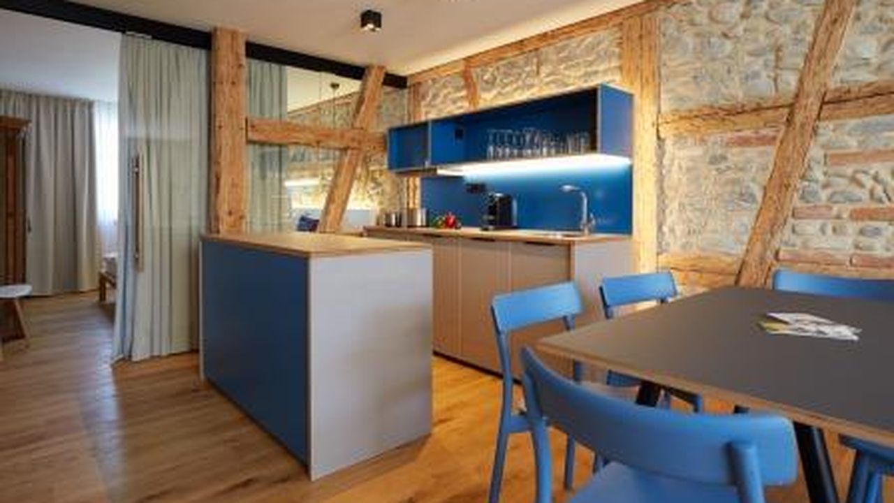 Das Aparthotel Sternen verfügt über 15 hochwertig eingerichtete Apartments. 5 Zimmer befinden sich im denkmalgeschützten Fachwerkgebäude, welches 2019 entkernt und hochwertig saniert wurde. 10 Zimmer befinden sich im Neubau und sind mit Balkon, Loggia oder Terrasse ausgestattet. Die Apartments sind zwischen 23 qm und 68 qm groß.