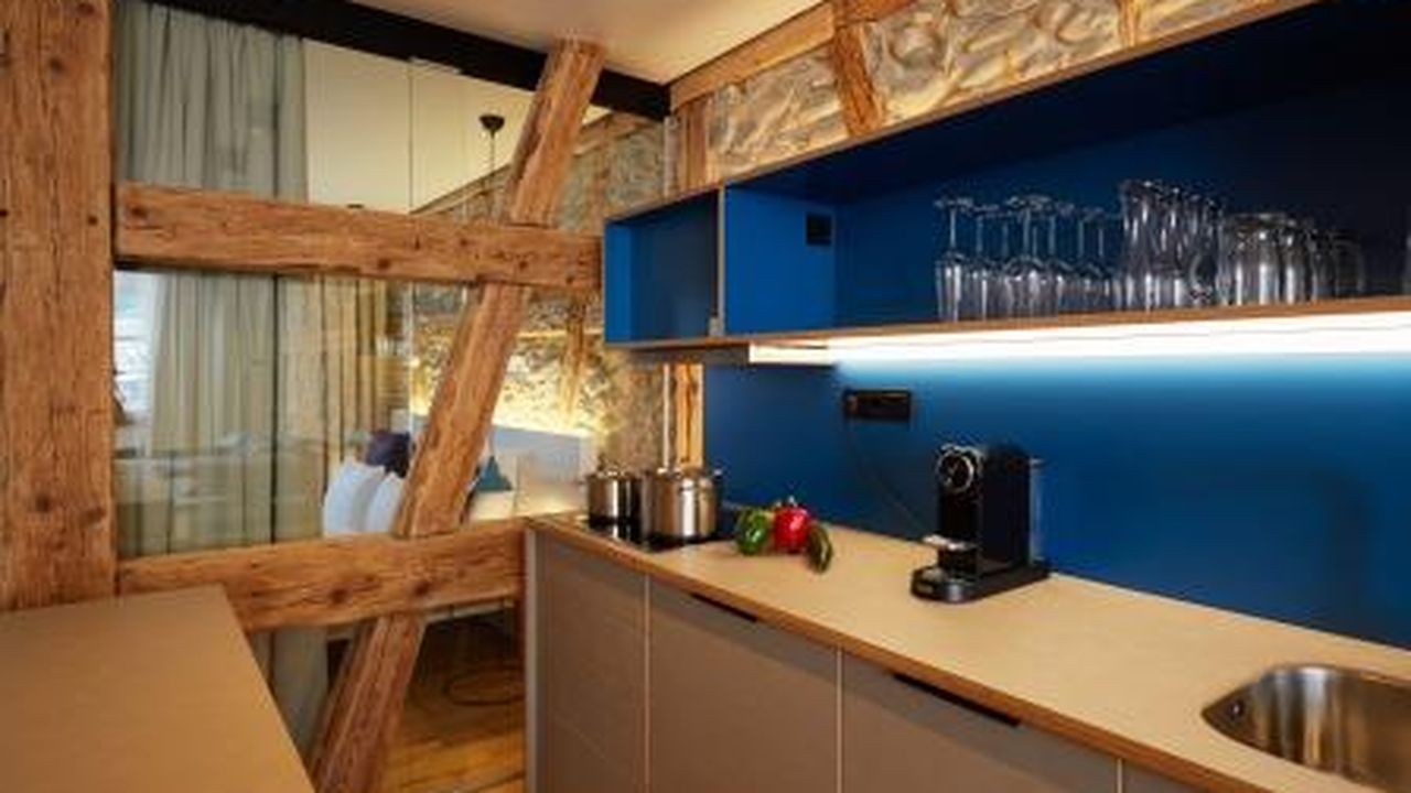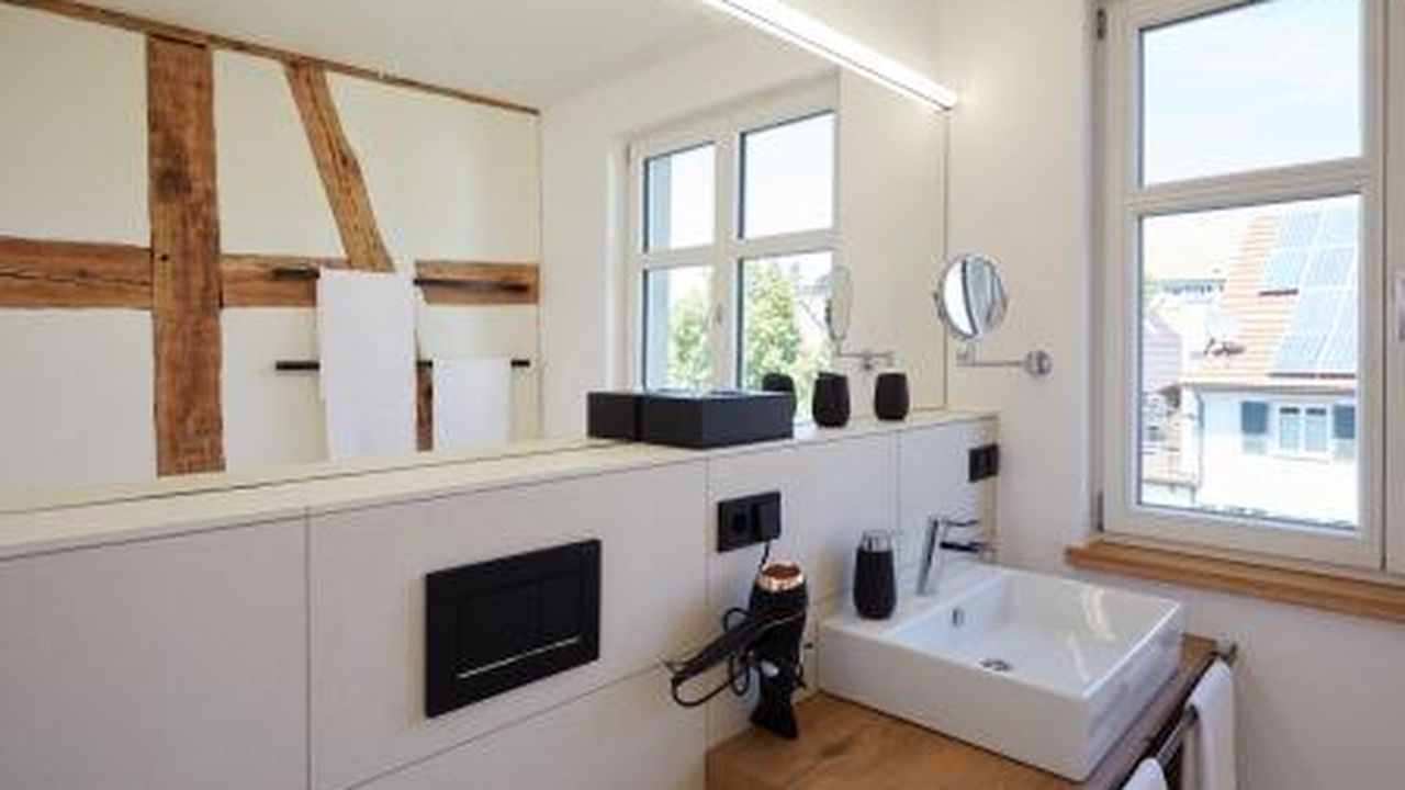 Das APARTMENT STERNEN befindet sich im 2.OG des Fachwerkgebäudes und ist über eine Treppe erreichbar. In diesem besonderen Apartment ist noch Vieles vom charakteristischen Fachwerkgebäude zu sehen und verspricht daher ein sehr gemütliches Wohnen. Es ermöglicht Ihnen einen vielfachen Blick auf den Flusslauf der Aach sowie zur Aachbrücke mit der Nepomukstatue.