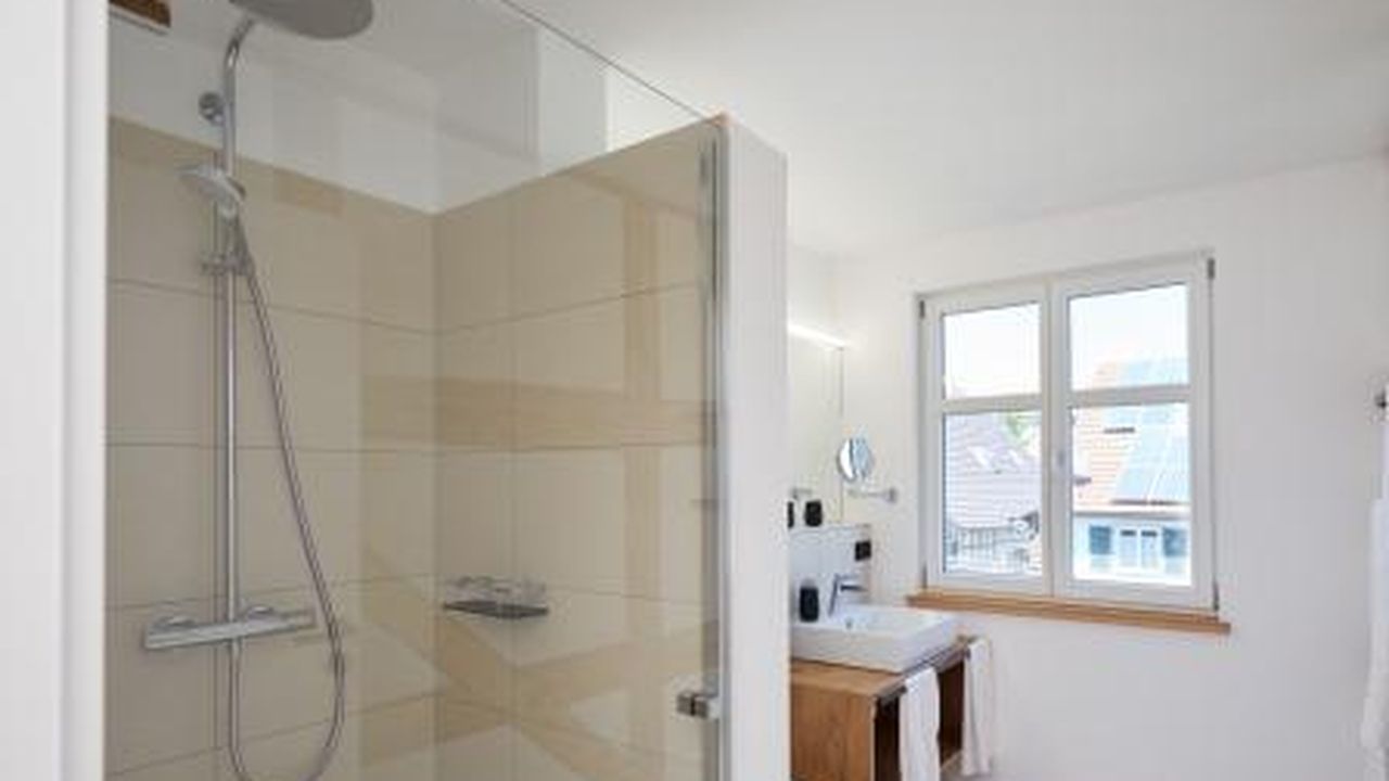- Eigenes Bad mit Regendusche, Waschtisch, WC, Haartrockner, Kosmetikspiegel