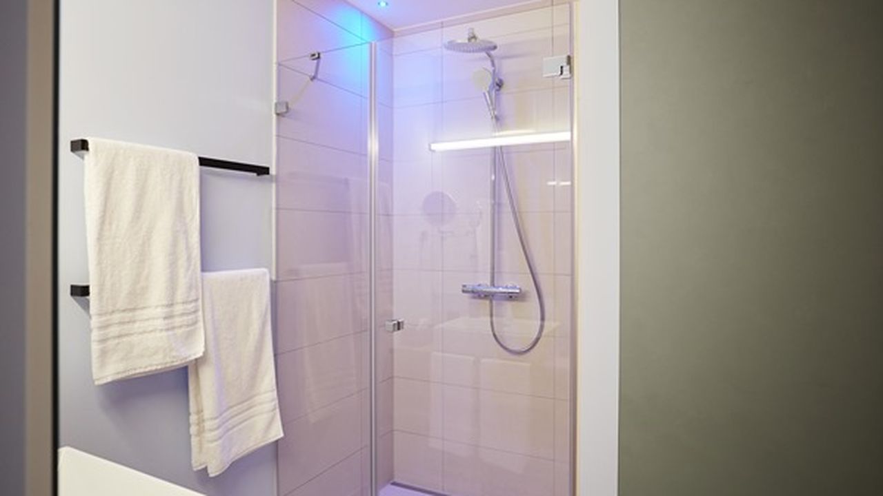- Eigenes Bad mit Regendusche, Waschtisch, WC, Haartrockner, Kosmetikspiegel
