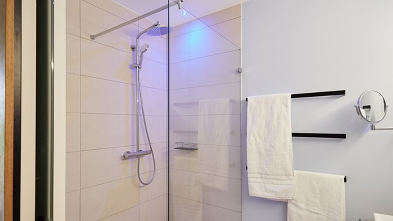 - Eigenes Bad mit Regendusche, Waschtisch, Haartrockner, Kosmetikspiegel
