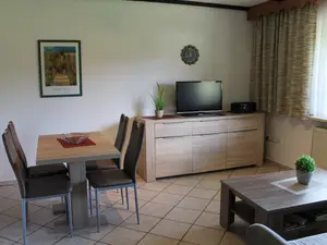Für gemütliche Abende ist die Ferienwohnung mit einem Fernseher ausgestattet. Brettspiele liegen bereit.