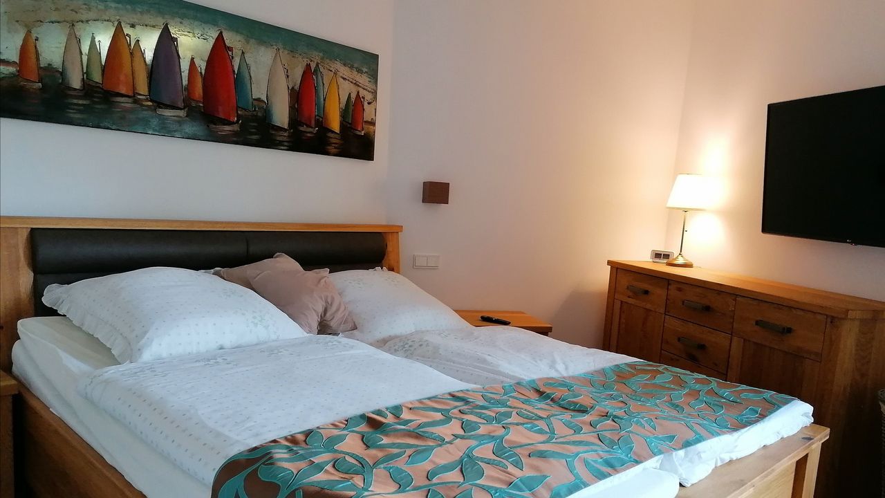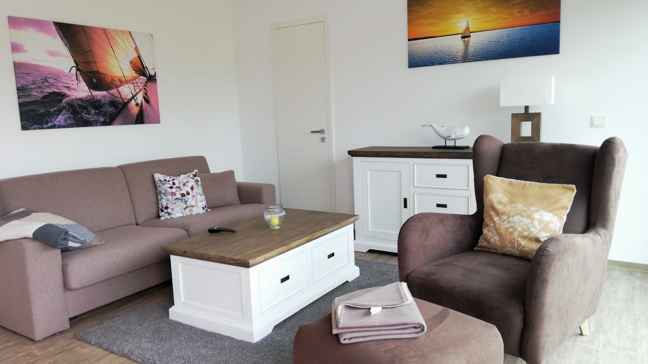 Eine hochwertige und geschmackvolle Einrichtung schafft Gemütlichkeit und bietet unseren Gästen ein schönes zu Hause auf Zeit. Die gesamte Nichtraucher-Ferienwohnung ist mit einer Fußbodenheizung versehen.