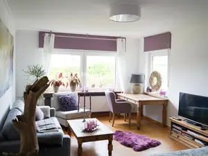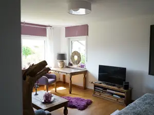 Die Wohnung verfügt über ca. 50qm und eignet sich ideal für zwei Personen. Die Unterkunft ist aufgeteilt in einen gemütlichen Wohn- Schlafraum mit Couch, Sessel, Tisch, Stuhl und Doppelbett, eine große Küche mit Essplatz, ein Duschbad mit Tageslicht und Fenster, sowie einen geräumigen Flur mit Kleiderschrank. Zur Ausstattung gehören: Flachbild-TV mit SKY, Internetanschluss (DSL), Bettwäsche und Handtücher und Föhn.Zur voll ausgestatteten Küche gehören Pfannen, Töpfe, Besteck und Geschirr sowie eine Kaffeemaschine, Backofen und Geschirrspüler, Essig, Öl, Gewürze. Die Wohnung ist ideal für Wanderer und Radfahrer, aber auch für Geschäftsreisende, die abends entspannt der Alltagshektik entfliehen möchten.Beschreibung der Unterkunft