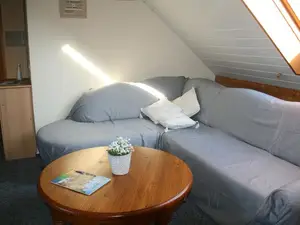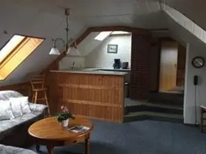 Ferienwohnung Grandel im Obergeschoss, herrlicher Blick, 2 Schlafräume mit je einem Doppelbett, Wohnzimmer mit Kochnische, Dusche/WC, Bettwäsche und Handtücher inklusive