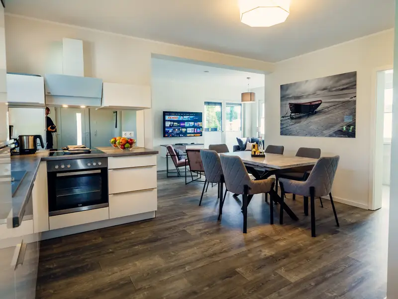 Die puristischen und hochwertig eingerichteten Wohnungen Berlioz und Delling umfassen jeweils eine Wohnküche, ein Bad mit ebenerdiger Dusche und ein Schlafzimmer mit Smart-TV und Boxspringbett. Die Wohnzimmer bieten eine Aufbettung für 2 weitere Personen auf einem Boxspringsofa, sodass die Wohnungen problemlos jeweils 4 Schlafplätze bieten.