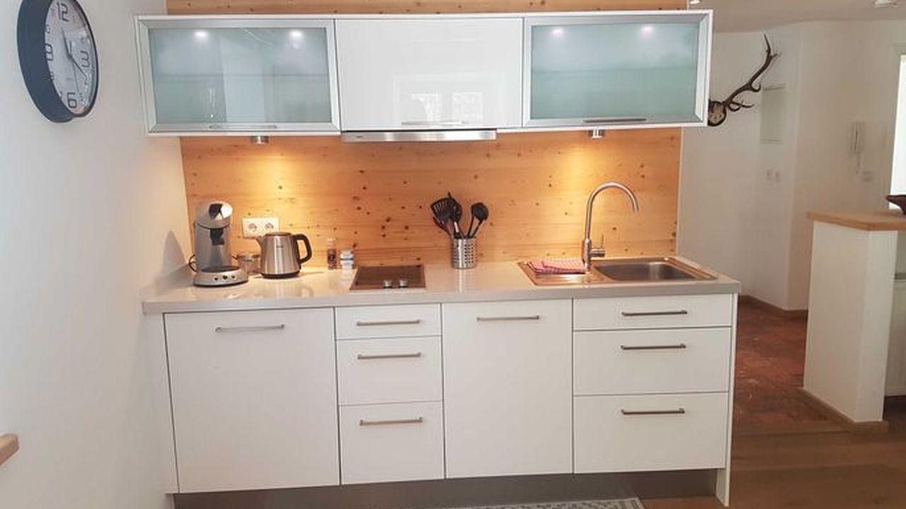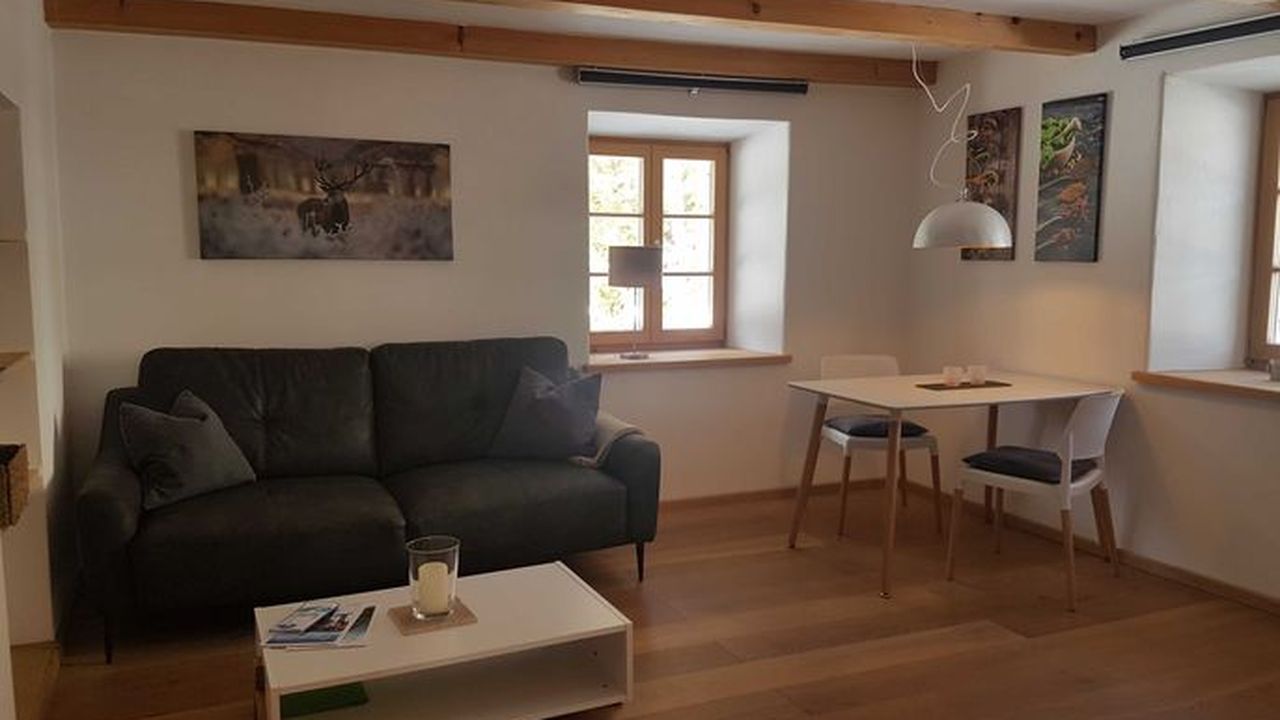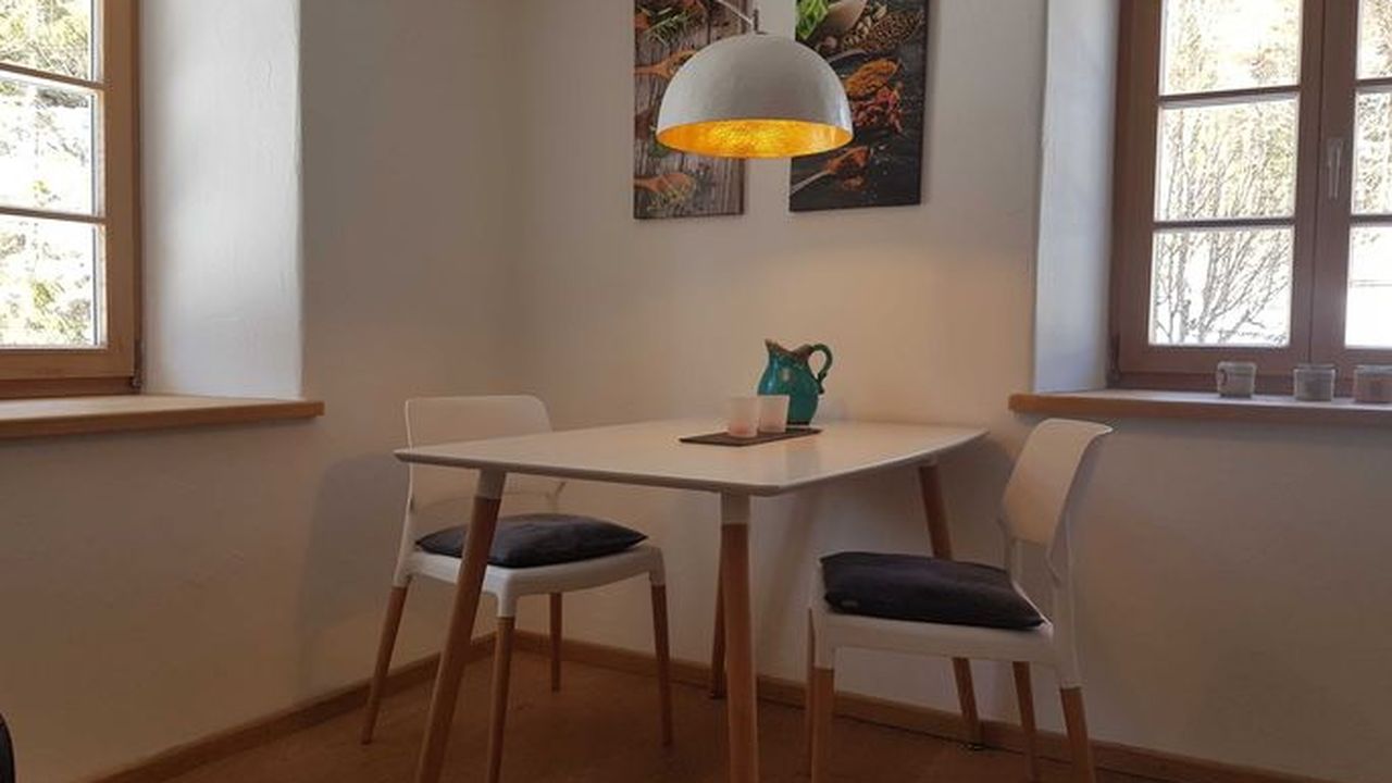 Die helle und gemütliche Zweizimmerwohnung liegt im 1. Stock, ist ländlich modern eingerichtet und mit hochwertigen Eichenholzböden sowie historischem Ziegelboden ausgestattet.Das Wohn- und Esszimmer bietet eine vollausgestattete Küchenzeile, inklusive Ceranfeld mit zwei Kochplatten, Kühlschrank mit Gefrierfach, Spülmaschine, Kaffeepad-Maschine von Senseo und Wasserkocher. Außerdem sitzen Sie gemütlich am Esstisch oder entspannen auf der modernen Ledercouch.