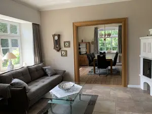 Die große und helle Ferienwohnung "Rungholt" ist ca. 100 m2, liegt im Erdgeschoss des Haupthauses und bietet Platz für 8 Personen. Die Wohnung ist aufgeteilt in einen Wohnraum, ein Esszimmer, 3 Schlafzimmer und 2 Badezimmer. Der Wohnraum ist mit 2 hochwertigen Sofas, Kamin und großem Flachbild-TV eingerichtet. An der Decke im Wohnraum befindet sich echter Stuck. Das angrenzende Esszimmer ist mit einem großen Esstisch für alle Personen und einer zusätzlichen großen Schlafcouch eingerichtet. Der Wintergarten mit Blick in den Garten ist mit einer Sitzgruppe und einem zusätzlichen Schlafsofa eingerichtet. Die drei Schlafzimmer sind wie folgt eingerichtet und ausgestattet: Ein Schlafraum ist mit einem Doppelbett und Kleiderschrank eingerichtet. Von diesem Schlafraum haben Sie Zugang zum Badezimmer mit Eckbadewanne, Dusche, WC und 2 Waschbecken. Ein weiterer Schlafraum ist ebenfalls mit einem Doppelbett eingerichtet. Das Kinderschlafzimmer ist mit 2 Etagenbetten und einem großem Schlafsofa eingerichtet. Ein weiteres Badezimmer ist mit Dusche und WC ausgestattet. Die voll ausgestattete Küche ist mit einem Herd mit Cerankochfeld und Backofen, Kühlschrank, Geschirrspülmaschine, Wasserkocher, Toaster und Kaffeemaschine ausgestattet. Die große Terrasse mit Gartenmöbeln lädt zum Erholen ein. W-LAN/ Glasfaser verfügbar, Nichtraucher. Bettwäsche und Handtücher sind im Preis inbegriffen. Gut erzogene Hunde sind in allen Wohnungen erlaubt - die Gebühr beträgt 5,00 EUR pro Hund/ Tag (maximal 2 Tiere pro Wohnung).Verfügbare Zusatzleistungen