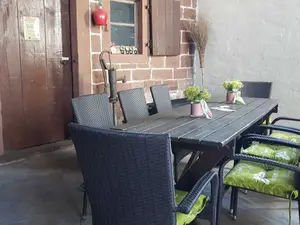 Ein Appartement für Familie und Freunde- nicht für Monteure. Als Maisonette über 2 Etagen auf runden 50 qm, verfügt es im unteren Bereich über einen großzügigen Ess- und Wohnbereich samt Badbereich und unter dem Dach über einen ungetrennten Schlafbereich für beispielswiese 2 Erwachsene und 2 Kinder oder 3 Erwachsene. Für Babys wegen der steilen Treppe nicht geeignet. Ein Flatscreen befindet sich an der Wand. Unsere Bettwäsche verfügt über Komfortgröße in den Maßen 1,55 x 2,20 m. Unsere Matratzen sind H2/H3 Qualität für unterschiedliche Gewichtsklassen. Der offene Küchen-, Ess- und Wohnbereich besticht durch sein modernes Ambiente. Ein großer Esstisch mit einer ausrechenden Anzahl an Stühlen lädt zum gemeinsamen Essen ein. Die offene Küche ist voll ausgestattet: Einbauküche mit Cerankochfeld & Backofen, Kühlschrank mit Tiefkühlfach, Spülmaschine, Kaffeepadmaschine, Wasserkocher, Toaster, Töpfe, Pfannen und Küchenutensilien, Geschirr & Besteck sowie Geschirrtücher. Eine moderne Sanitärausstattung befindet sich im Bad: Dusche mit niedrigem Einstieg, beleuchteter Spiegel und ein großes Fenster zum Lüften. Ausreichend Handtücher, Badetücher und ein Föhn stehen hier kostenfrei zur Verfügung. Ihre Kleidung können Sie in der Garderobe oder auf mehreren Kleiderständern mit Fächern verstauen. Im Innen- und Außenbereich verfügen wir über kostenfreies Wlan. Die kostenfreien Parkplätze befinden sich direkt im Hof. Eine ausreichende Anzahl an Sitzmöglichkeiten im teilweise überdachten und mit Pflanzen flankierten Außenbereich ist vorhanden. Eine Außentoilette ist diesem Bereich angegliedert. Waschmaschine und Trockner befinden sich in einem weiteren Funktionsraum. Sie können gerne gegen eine kleine Gebühr genutzt werden.Als Maisonette über 2 Etagen verfügt es im unteren Bereich über einen großzügigen Ess- und Wohnbereich samt