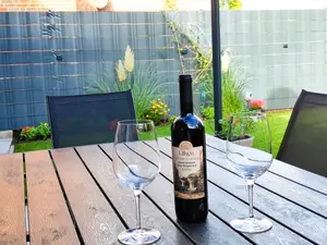 Richtige Urlaubsstimmung kommt auf der schönen Terrasse des Ferienhauses auf.
