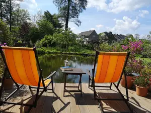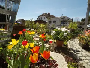 Die Wohnung wurde 2019 liebevoll neu eingerichtet. Sie besteht aus Wohnzimmer, großer Küche mit Essplatz, 2 Schlafzimmern mit Doppelbetten, Arbeits- / Spielezimmer, Badezimmer mit Dusche und separatem WC. An das Arbeitszimmer angebaut ist ein Balkon mit Abgang zur Terrasse. Ausgestattet ist die Wohnung mit allen erforderlichen Geräten, 2x SAT-TV (Wohnzimmer und 1 Schlafzimmer), Waschmaschine, Herd, Geschirrspüler, Kaffeemaschine, Microwelle etc. In der gesamten Wohnung ist kostenloses W-LAN nutzbar. Auf Balkon und Terrasse sind Gartenmöbel, Sonnenschirm, 2 Liegen und Grill vorhanden. Der Schwimmteich im üppig blühenden Garten kann mitbenutzt werden. Die Beerensträucher und Obstbäume laden zum Naschen ein (je nach Jahreszeit).Für Fahrräder, Kinderwagen, Schlitten, Skier usw. steht eine verschließbare Fahrradgarage zur Verfügung. In 500m Entfernung finden Sie eine Ladestation für E-Bikes. Gerne bieten wir Ihnen einen Transferservice vom nächstgelegenen Bahnhof an.