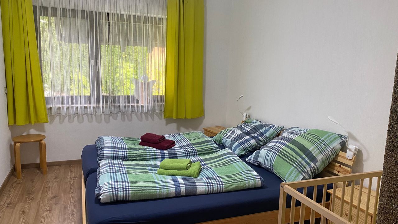 Helle große Ferienwohnung mit umlaufendem Balkon und je nach Wetterlage herrlichem Alpenblick.In 100 m Entfernung befindet sich ein kleiner Edeka mit Bäcker und diverse Geschäfte, Banken, Ärzte und Apotheke befinden sich im Ort. In 400 m gibt es einen Fußballplatz und im angrenzenden Kurpark einen Spielplatz mit Wassertretstelle.
