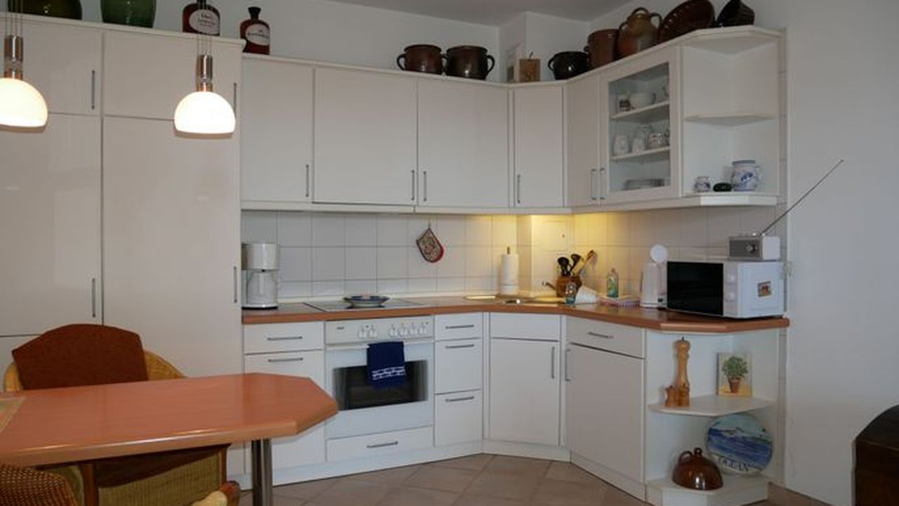 Die 2-Raum-Komfort-Ferienwohnung ist ca. 68qm groß und befindet sich im Erdgeschoss des Hauses. Der großzügige Wohn-Essbreich ist mit einer gemütlichen Couch und Sesseln sowie einem Flat-TV ausgestattet und schließt sich an die offene und vollausgestattete Küchenzeile mit Backofen, Cerankochfeld, Kühlschrank mit Gefrierfach, Mikrowelle, Kaffeemaschine, Wasserkocher und Toaster an. Das Schlafzimmer verfügt über ein Doppelbett, Einbauschrank, Safe, Bügelbrett und Bügeleisen. Das Badezimmer ist mit einer Duschwanne, Haartrockner und Kosmetikspiegel ausgestattet. Das WC ist separat vom Badezimmer. Vom Wohnzimmer aus erreichen Sie die schöne, grüne, vollmöblierte Terrasse mit Meerblick. Die Wohnung verfügt über einen kostenfreien Internetzugang via W-LAN. Alle Fenster sind zur Strandpromenade und der Ostsee ausgerichtet. Für allgemeine Fragen steht Ihnen der Hausmeister vor Ort gerne zur Verfügung.Auf dem abgeschlossenen Grundstück steht Ihnen ein Parkplatz kostenfrei zur Verfügung. Die Erstausstattung Bettwäsche und Handtücher ist bereits im Preis enthalten.