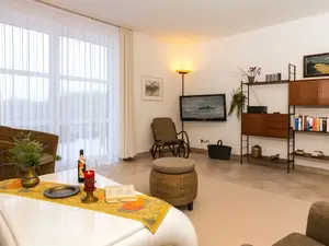 Die 2-Raum-Komfort-Ferienwohnung ist ca. 68qm groß und befindet sich im Erdgeschoss des Hauses. Der großzügige Wohn-Essbreich ist mit einer gemütlichen Couch und Sesseln sowie einem Flat-TV ausgestattet und schließt sich an die offene und vollausgestattete Küchenzeile mit Backofen, Cerankochfeld, Kühlschrank mit Gefrierfach, Mikrowelle, Kaffeemaschine, Wasserkocher und Toaster an. Das Schlafzimmer verfügt über ein Doppelbett, Einbauschrank, Safe, Bügelbrett und Bügeleisen. Das Badezimmer ist mit einer Dusche, Haartrockner und Kosmetikspiegel ausgestattet. Das WC ist separat vom Badezimmer. Vom Wohnzimmer aus erreichen Sie die schöne, grüne, vollmöblierte Terrasse mit Meerblick. Die Wohnung verfügt über einen kostenfreien Internetzugang via W-LAN. Alle Fenster sind zur Strandpromenade und der Ostsee ausgerichtet. Für allgemeine Fragen steht Ihnen der Hausmeister vor Ort gerne zur Verfügung.Auf dem abgeschlossenen Grundstück steht Ihnen ein Parkplatz kostenfrei zur Verfügung. Die Erstausstattung Bettwäsche und Handtücher ist bereits im Preis enthalten.