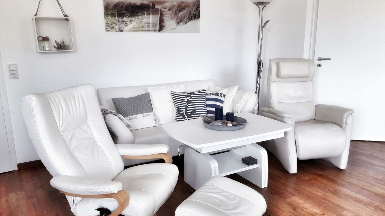 Der geräumige und gemütliche Wohnbereich erwartet Sie mit Ledersofa und Relax-Sesseln, sowie offener voll ausgestatteter Wohnküche. Der Kaffeegenießer kann zwischen Filterkaffee und Kaffeepads wählen. Für Kaffee-Latte gibt es einen Milchaufschäumer.